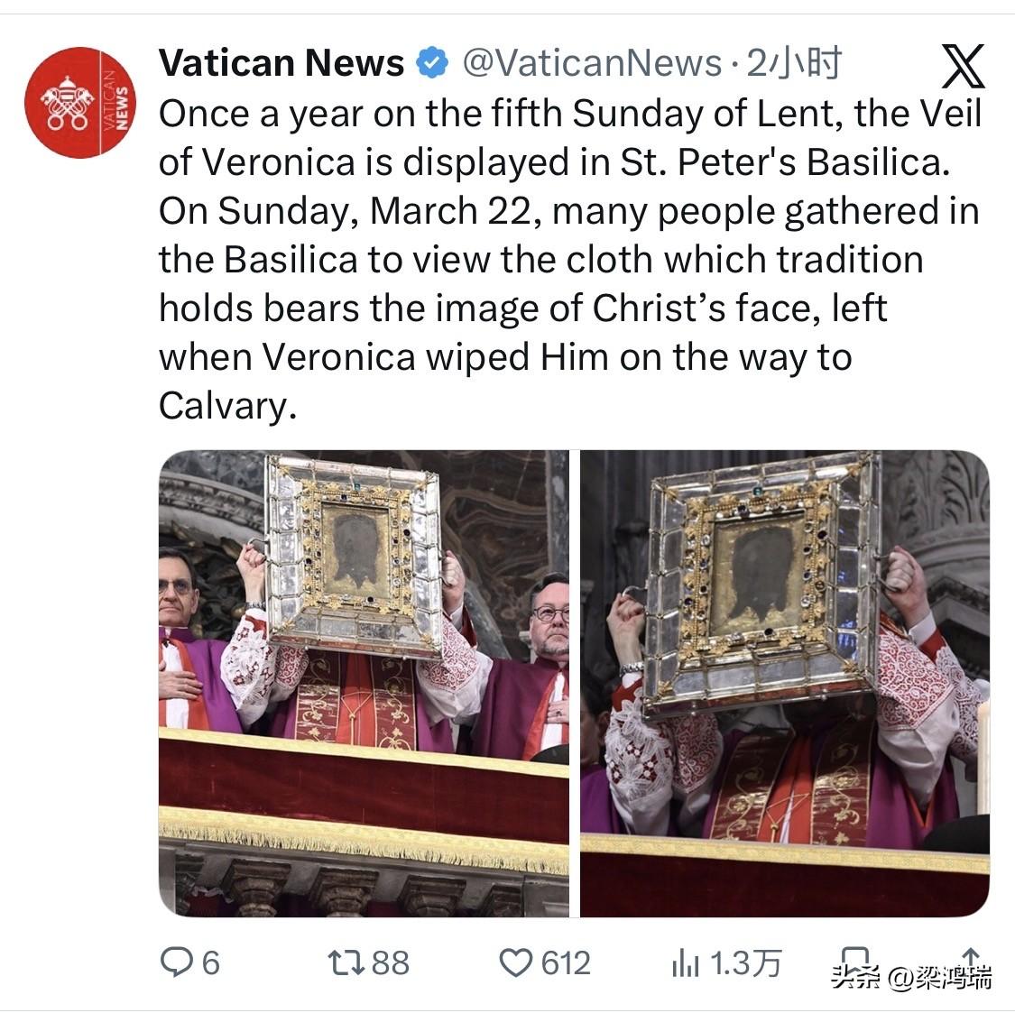 每年四旬斋的第五个星期日,圣维罗尼卡圣纱会在梵蒂冈圣彼得大教堂展出。