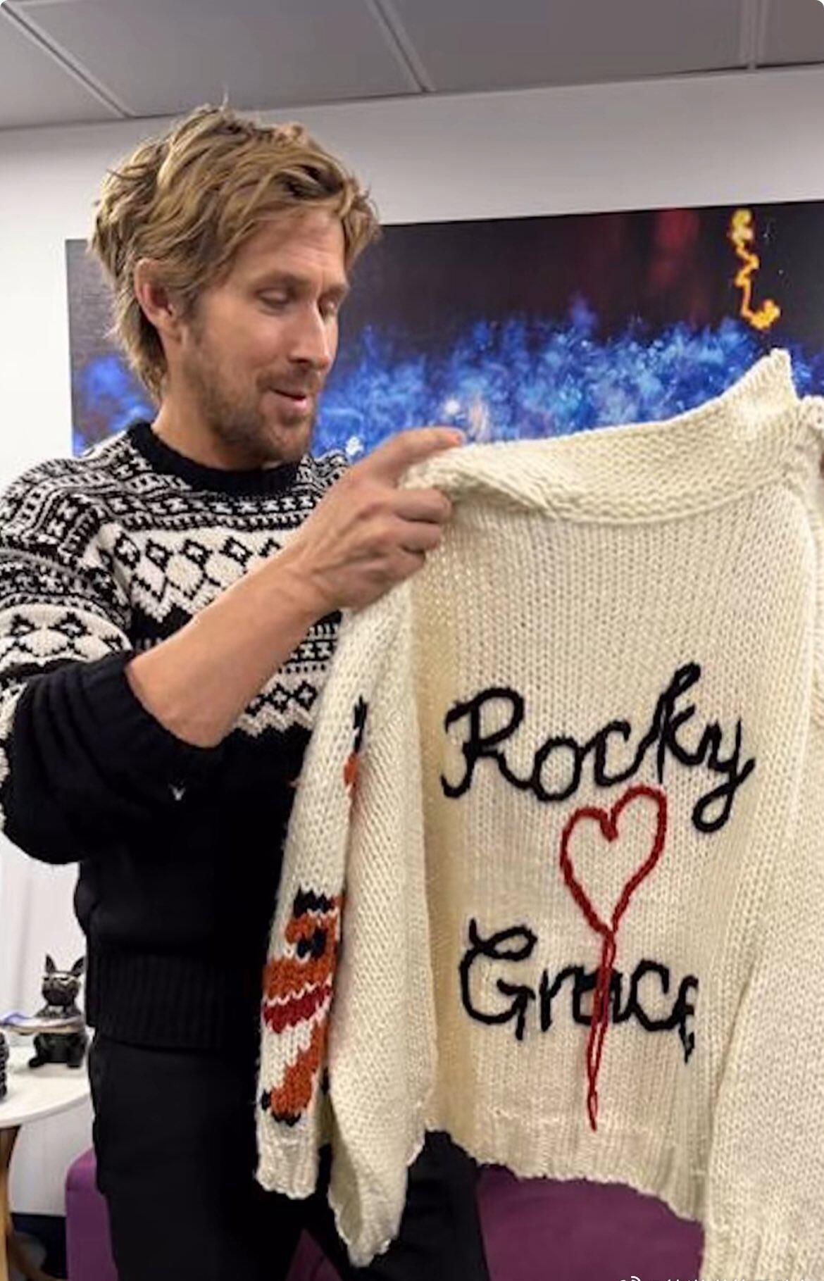 谁还记得那位很爱钩针织毛衣的英国跳水运动员戴利?🥺 他给瑞恩·高斯林织了一件《挽救计划》的毛衣,背后是“Rocky ❤️ Grace”