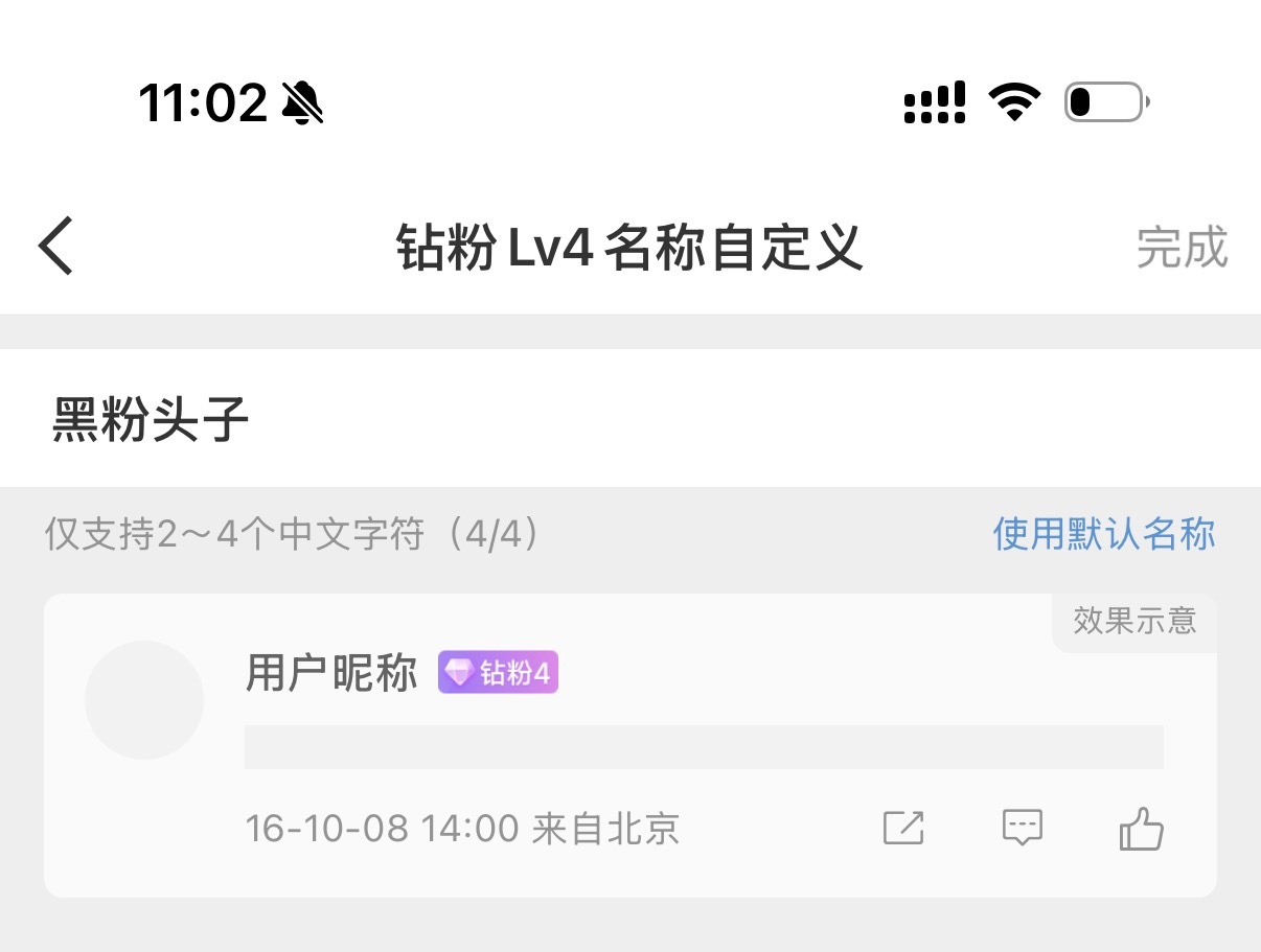 钻粉4是可以自定义名称的,我改成了「黑粉头子」。你们觉得合适不?