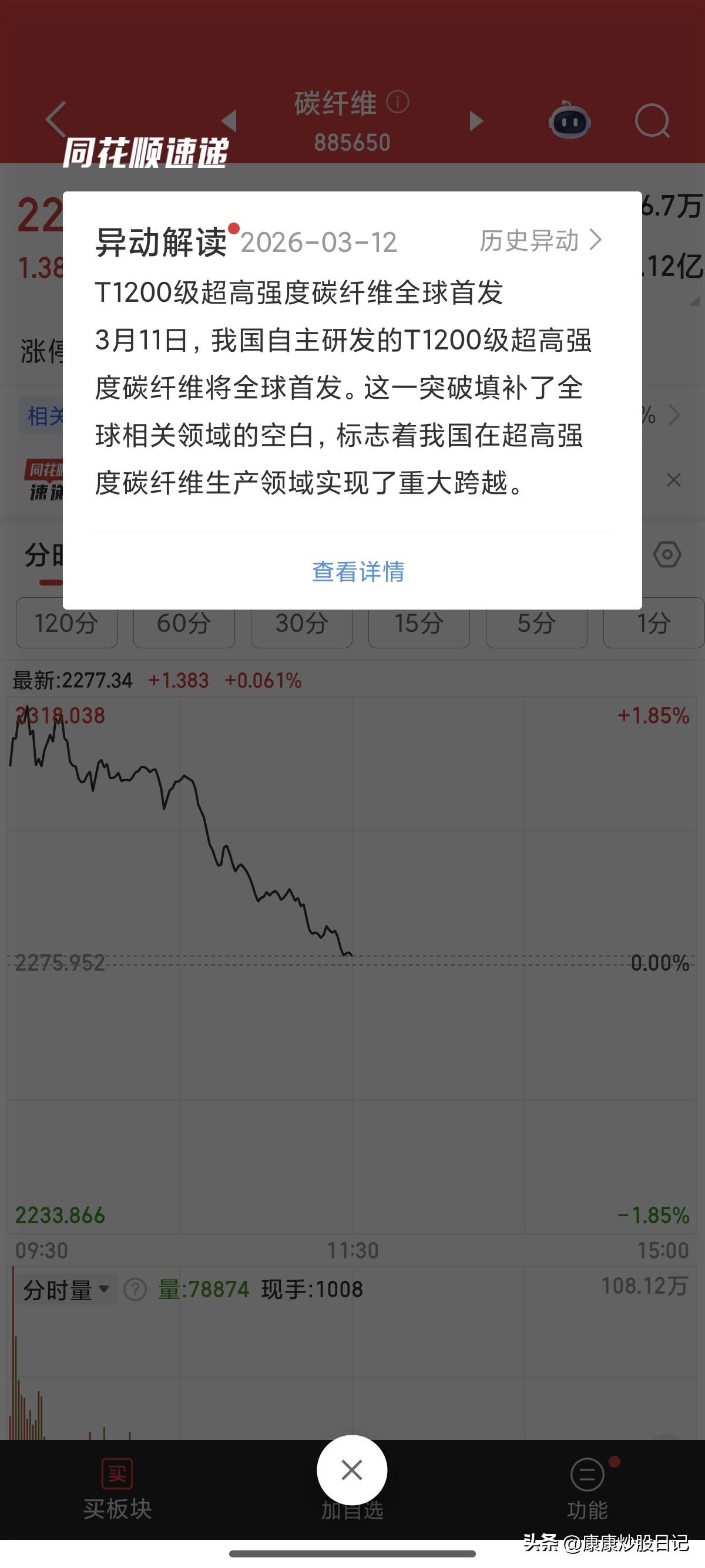再看碳纤维:昨晚利好落地,今天直接大幅冲高回落,这种消息盘你敢追吗?我是不敢。利好兑现变利空,有消息反而更难做,这就是A股常态。