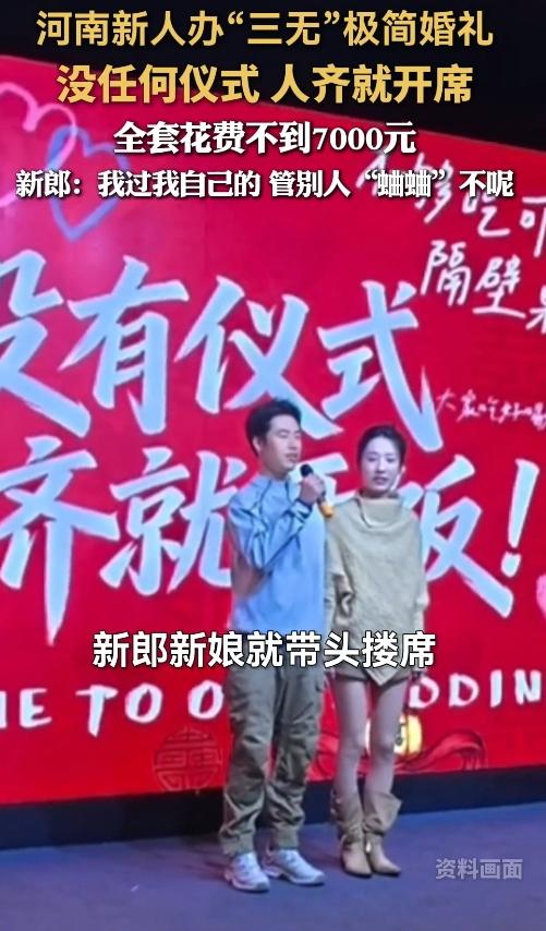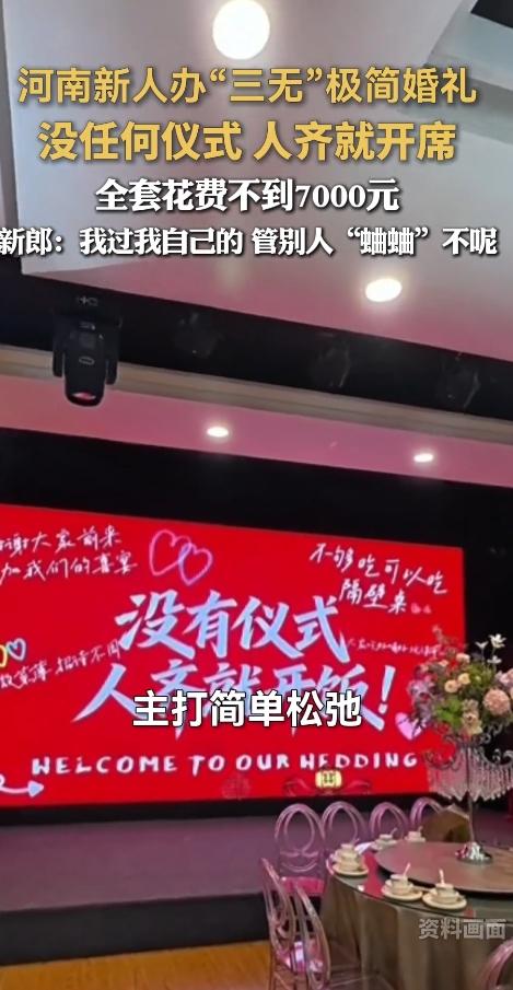 结新婚!河南小两口7000块办婚礼,人齐开饭不折腾,网友:太会过日子了 最近河南有对小夫妻火了,他们办了场特别不一样的婚礼,说出来你可能都不信——从头到尾花了还不到7000块! 这对新人里,新郎姓袁。人家筹备婚礼那叫一个利落,前后加起来才20多天。没有浩浩荡荡的婚车车队,没有请那些专业的摄像、化妆团队,连复杂的婚礼仪式都省了。到了日子,亲戚朋友一到齐,直接开席吃饭。新郎新娘就混在人群里,不仔细看真分不清谁是今天的主角,小两口还带头跟大家热闹地唠嗑,那叫一个松弛自在。 有人觉得,一辈子就结一次婚,这么办是不是太潦草了?可袁先生和妻子不这么想。新娘子一开始就提议:“咱别搞那些麻烦事了。”两个人一拍即合,都不喜欢婚礼上那种刻意煽情、催人落泪的场面。 省下的钱怎么花?小两口心里早就盘算好了。原本按当地习俗,办场像样的婚礼至少得四五万,现在省下来的4万多,全用在改善小日子上:买个扫地机器人,平时做家务能省不少力;再添个相机,以后日子里的点点滴滴都能拍下来留作纪念,多实在。 其实啊,现在越来越多年轻人结婚,都开始琢磨“怎么舒服怎么来”。以前那种大操大办、互相攀比的风气,慢慢被更务实的想法取代了。婚礼说到底,是两个人新生活的开始,重要的不是场面多风光,而是往后的日子能过得踏实舒心。这对河南小夫妻用一场极简婚礼告诉我们,幸福真的不用靠钱堆出来。 换作是你,会选择这样简单又暖心的婚礼吗?觉得这对新人做得对的,点个赞;有其他想法的,也来评论区聊聊~ 极简婚礼走红 年轻人的新式婚礼 河南夫妻7000元办婚礼 信息来源:大众新闻.大众日报