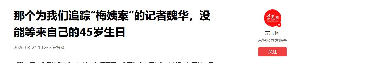 满屏都在悼念魏华,起初我纳闷这是谁。查完过往,惊出一身冷汗。原来大名鼎鼎的“都市大先生”就是他!在网红抢着带货的年代,竟真有人为查真相隐姓埋名二十多年。 3月21日,广州警方通报了一个震动全国的消息。那个拐卖儿童案的关键“中间人”,人称“梅姨”的谢某某终于落网。同一天,在郑州的一家殡仪馆里,一场特殊的追悼会正在举行。 寻子父亲申军良站在人群中泣不成声。他刚接到“梅姨”落网的通知,却再也无法把这个好消息亲口告诉他的恩人。这个恩人,就是刚刚突发心脏病离世的魏华,年仅45岁。 魏华是谁?他是河南广播电视台《都市报道》的调查记者。从业22年,他几乎从未在镜头前露过脸,甚至连署名都用化名。但他笔下的文字,却化作了一把把刺向黑暗的“尖刀”。 2023年,跨国电信诈骗猖獗。魏华带队卧底120天,推出《缅北归来》等重磅报道。全网播放量突破50亿次,直接从缅北魔窟救回了6名中国同胞。这不仅是新闻,更是跨国营救。 调查记者的路,是用命蹚出来的。2016年,他在暗访盗刷银行卡黑产时,在跨海大桥上被四五辆黑车死死围堵逼停。生死关头,他脑子里想的不是逃命,而是死保取证设备。 那次惊险脱身后发出的报道,后来被公安部直接录入电信诈骗经典案例。他无惧生死,面对威胁和恐吓从未退缩。他曾对同事说:自己不怕死,最怕的是“稿子发不出来”。 在生命的最后1260天里,他的暗访足迹遍布全国194个城市。2019年,他带队历时一个多月卧底,五天跨越五千公里,推出《“婴”谋》报道,硬生生从人贩子手里救下5名婴儿。 2021年曝光卖肾黑中介,促使多地警方雷霆出击。2024年“3·15”期间,他又带队卧底地下实验室,将非法代孕黑色产业链大白于天下。哪里有罪恶,哪里就有他的暗访镜头。 铁肩担道义,他也有着最柔软的心。2005年,申军良的儿子申聪在广州被抢。在申军良写下遗书、濒临崩溃的最绝望时刻,是魏华赶赴广东,整整陪了他十天,撑起了他的精神支柱。 魏华不仅用深度报道为弱者撑起舆论的保护伞,还经常自掏腰包为求助者垫付路费。他用行动告诉那些绝望的人:别怕,这世界还有人愿意为你们拼命。 为了这份事业,他牺牲了太多。因为深知被曝光对象随时在找他寻仇,他不敢陪家人逛街,从不发家人照片。面对家人对他高危工作的担忧,他总是轻描淡写地说“只是采访了个小事”。 在这个流量为王的时代,无数人绞尽脑汁博眼球变现。妻子曾问他这么拼能赚多少钱,他只回了一句“没意思”。他不求名利,只因骨子里刻着那句纯粹的信仰:“谁让我是记者”。 2026年3月19日深夜,刚带领团队熬夜完成今年“3·15”三条重磅调查报道的魏华,心脏骤停,永远倒在了他最热爱的新闻战线上。第二天原定的表彰会,他再也无法出席。 命运的交错令人唏嘘。3月21日,魏华追悼会当天,“梅姨”落网。3月22日,本该是他45岁的生日。他用一生推动的打拐事业终于画上圆满句号,自己却没能亲眼见证这迟来的正义。 放眼全球,在自媒体泛滥、信息碎片化的当下,深度调查新闻依然是社会纠错的基石。魏华和他的团队,用扎实的证据揭露跨国犯罪,成为了司法与行政监管最不可替代的补充力量。 “都市大先生”从来不是一个人。这个化名,如今已沉淀为整个河南广电调查记者团队共用的精神铭牌。魏华虽然走了,但他带出的年轻记者,依然在替他负重前行。 当传统媒体面临转型阵痛,调查记者群体严重流失时,魏华的存在就像一座灯塔。他证明了无论时代如何变迁,守候真相、抑恶扬善的新闻理想,依然有着直击人心的磅礴力量。 社会正义的取得,往往伴随着无名英雄的巨大牺牲。魏华用22年的隐姓埋名,守候了世间的真相。在这个喧嚣的时代,我们需要这样的守夜人。他的名字,终将被历史永远铭记。