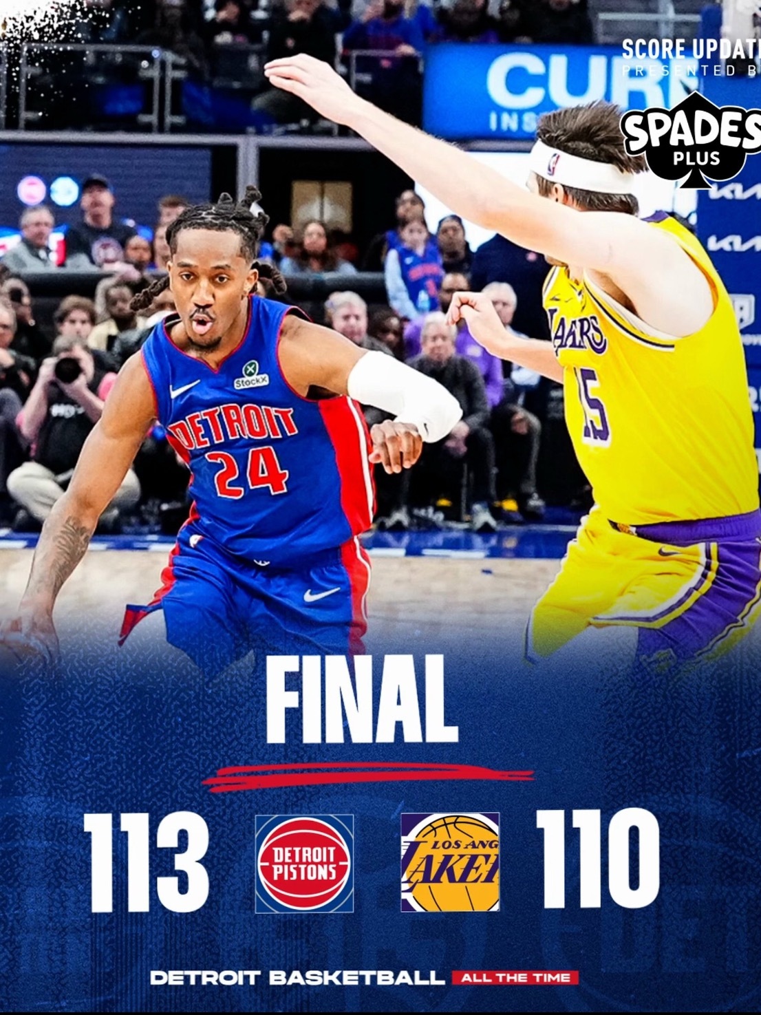 湖人9连胜被终结 湖人110-113不敌活塞,9连胜终结。东契奇32分,詹姆斯准三双,末节绝平未果,活塞双杀湖人🔥