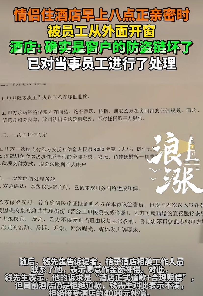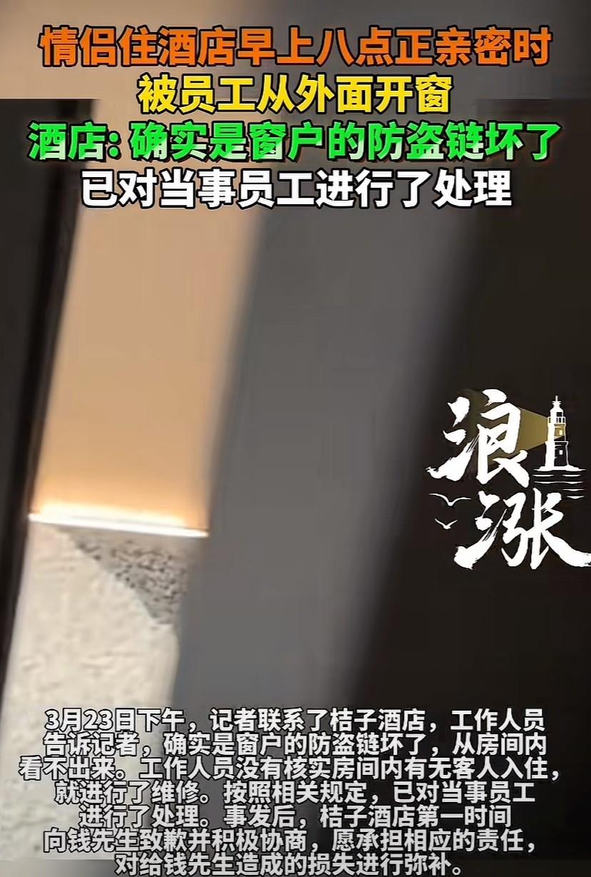 酒店后来解释是窗户防盗链坏了,得马上修。