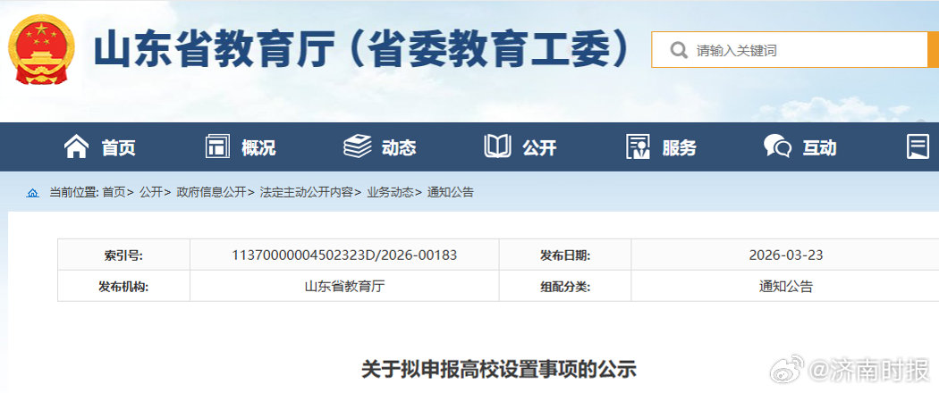 【#山东将新增一公办本科大学#,空天信息大学拟申报设置】3月23日,山东省教育厅发布关于对拟申报高校设置事项的公示。公示显示,新建的“空天信息大学”为公办本科。