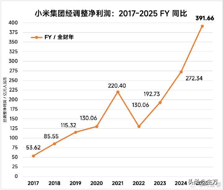 雷军晒出小米去年财报:总营收4573亿元,同比增长25%,经调整净利润392亿元,同比增长43.8%! 就在刚才,雷军在社交网络上晒出了小米2025年的财务报表,他们集团去年总共的收入是457,300,000,000元,这个数字真的很亮眼,因为同比前年上涨了四分之一,关键的是他们净利润达到了39,200,000,000元,同比增长了43.8%。 其中去年还在发力的智能汽车板块,今年基本上看到效果了,头一回突破了千亿,来到了106,100,000,000元,相比去年增长了两倍还要多,而且他们全年交付的车辆超过了41万台。 与此相对应的是他们去年的研发投入,整整一年投入了33,000,000,000元,又要比前年多一些。 但不管怎么样,他们的主流业务还是手机,因为超过了1864亿元,这才是他们的主业务,不过这里面好像没有看到家电这个板块的详细的数据,只有一个大的方向,卖了八百多万台,因为他们的智能家居电器系列,尤其是他们的空调系列也是卖得比较好的,看看后续会不会有详细的数据出来。