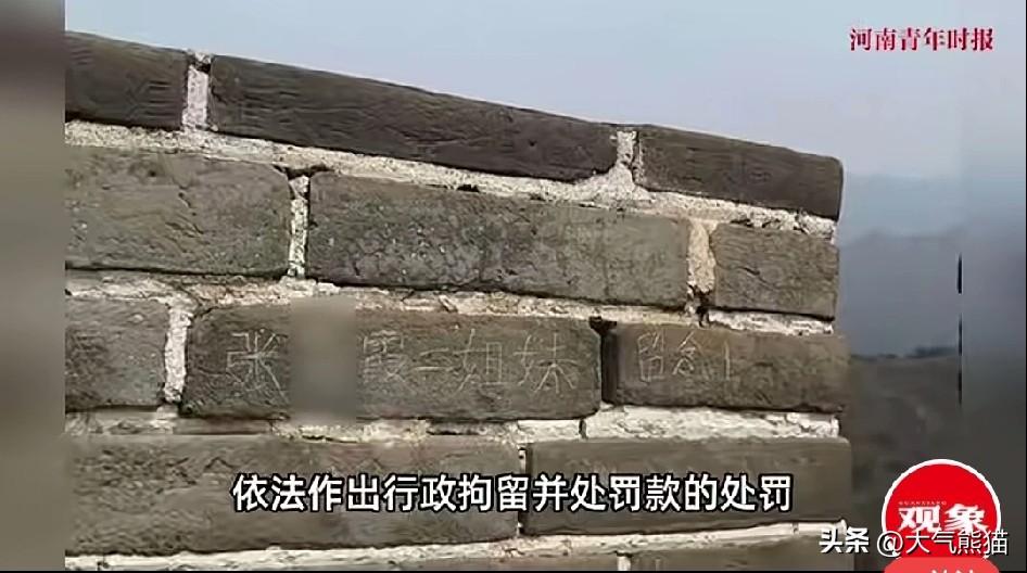 不说别的,这两名游客在长城上刻字,可能真的不知道自己的做法有什么后果! 别人在长城上做同样的事情,可能是小心谨慎,或者是在没人的时候,或者是采取隐蔽的措施,像这两位明目张胆,一个在刻一个还拿手机记录的,应该真的不知道这是违法的。 所以说,当她们被行政拘留并处罚款的时候心里肯定觉得自己受委屈,但关键是所有人都知道不能在长城上刻字,她们只能为自己的无知买单。