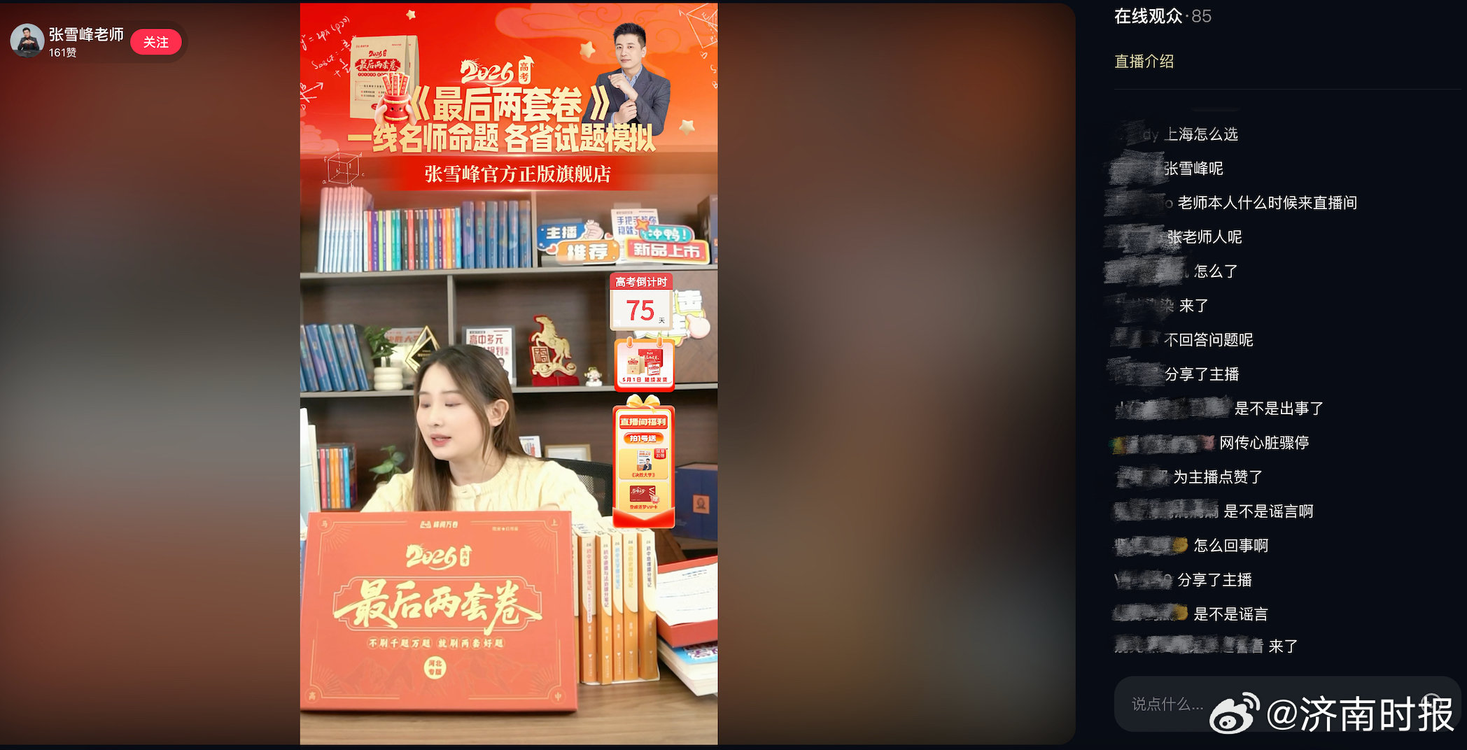 在传闻发酵初期,新黄河记者观察到,张雪峰旗下“峰学蔚来”等多个矩阵直播间原本在按计划正常开播。大量网友涌入直播间,评论区被“网上传闻是真的吗”、“求辟谣”等留言持续刷屏。各直播间出镜主播均未予回应,保持既定节奏讲解考研规划并正常挂车售卖课程。