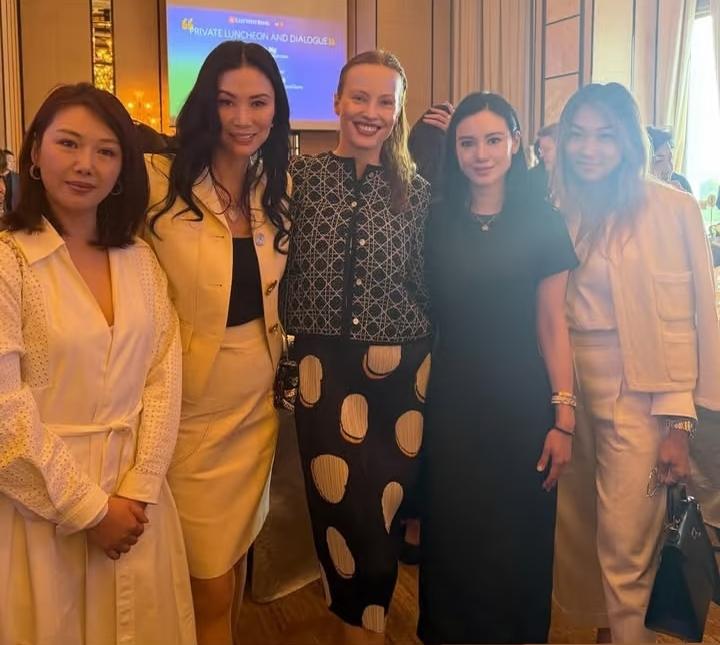 邓文迪参加名媛聚会,打扮邋遢有大肚腩,有了大婶的味道! 近日,邓文迪现身中国香港与林建岳的女儿林恬儿等人一起参加聚会,这一看就是名媛聚会,因为林恬儿的身份不简单,都知道她是谁,而她经常参加高端聚会。 没想到的是,58岁的邓文迪和42岁的林恬儿竟然能成为好朋友,还经常一起参加活动开心合影,看来咖位差不多就能成为朋友,年龄不是问题。 不过,这一次出现的邓文迪明显老了不少,只见她化了淡妆,穿了一身米色的工装裙子,头发烫了卷披了下来,戴了耳环和项链,上身的黑色内衣是低领的。 衣服的款式还是可以的,穿上去比较显年轻,一般情况58岁到了快60岁的年龄都是老年人了,很少人穿这种衣服,大都是奶奶装,而邓文迪的这身衣服应该是年轻人穿的。 她穿在身上就是为了提升气质,可是近距离看她的脸和以前不一样了,她微微一笑嘴是歪的,法令纹加深了。 最要命的是,她的身材一点都不好看,大腿好粗,有大肚腩,穿了宽松的裙子,还小腹隆起特别明显。 旁边的林恬儿看着就是小女生,身材苗条皮肤紧致,没有大肚腩,邓文迪有大肚腩,对比好明显,邓文迪还有点邋遢,终于有了大婶的味道,不像名媛。