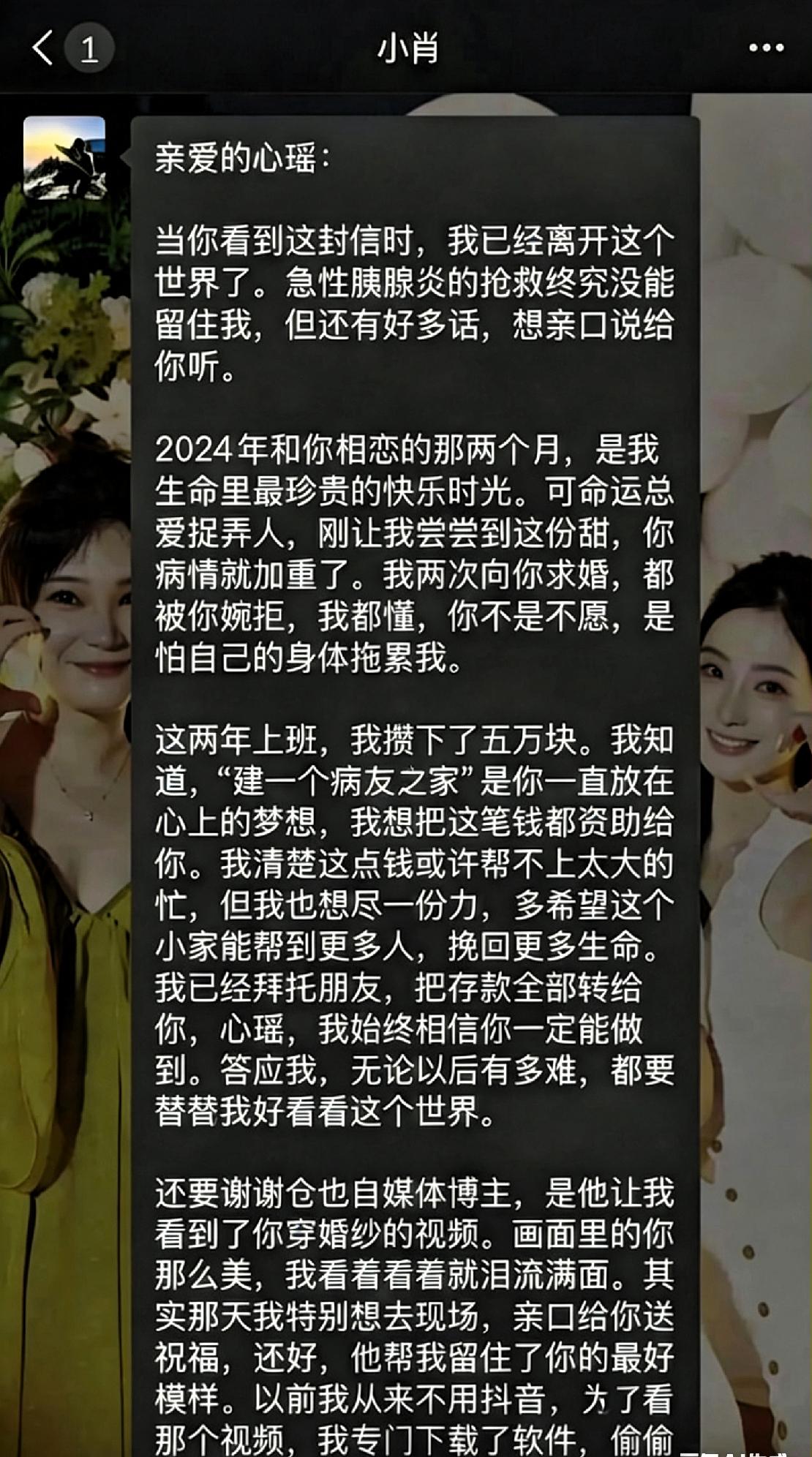 重庆地铁衣服擦血的女孩悲惨身世曝光,其病逝的前男友给他留下的遗书更是让人泪目。 女孩叫胡馨瑶,让很多人看完心生心疼。2003年出生的她患有罕见血管炎,因消化道出血在地铁上突发不适,即便身体十分痛苦,她仍坚持用自己的衣物清理血迹,不愿给其他乘客带来不便。 这份在困境中依然顾及他人的自觉与体面,让人十分动容。很多时候,我们评判一个人的教养,不是看顺境时的举止,而是看逆境中是否还能保持体谅与尊重。 她的感情经历同样让人感慨。她与曾是辅警的男友相识相伴,彼此珍惜。男友曾两次求婚,她都选择拒绝,并非没有感情,而是担心自身病情拖累对方。之后男孩因病离世,生前仍记挂她的心愿,委托朋友转交积蓄,支持她建立病友之家的想法。 两个人都在尽力为对方着想,不纠缠、不拖累,默默守护与成全,这份朴素的善意十分难得。 当下生活中,不少人遇到一点不顺便抱怨指责,而这位女孩在长期病痛的压力下,依然保持安静、克制与体面,不抱怨命运,不麻烦他人,扛下一切。 她的故事也让我们明白,人生无常,健康比什么都重要,善良比颜值更珍贵。真正的美好,不是一帆风顺,而是历经生活考验,依然保有内心的柔软与教养。 我们无法左右命运的安排,但可以选择体面而温柔地面对生活。也希望社会能给予罕见病患者更多理解与帮助,让他们在抗病路上少一点孤单。 愿这位懂事又坚强的女孩身体逐渐稳定,少受病痛困扰,被世界温柔以待。