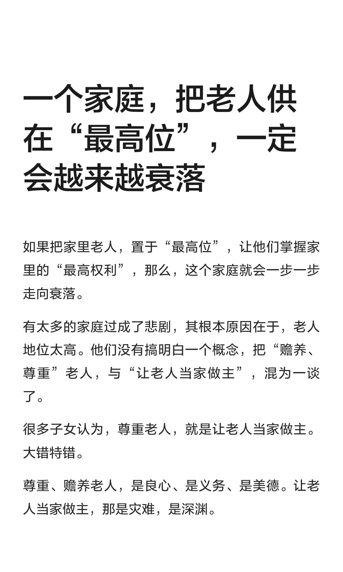 一个家庭,把老人供在“最高位”,一定会越来越衰落