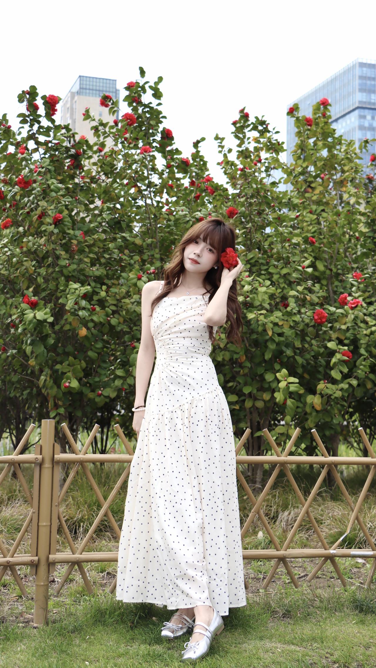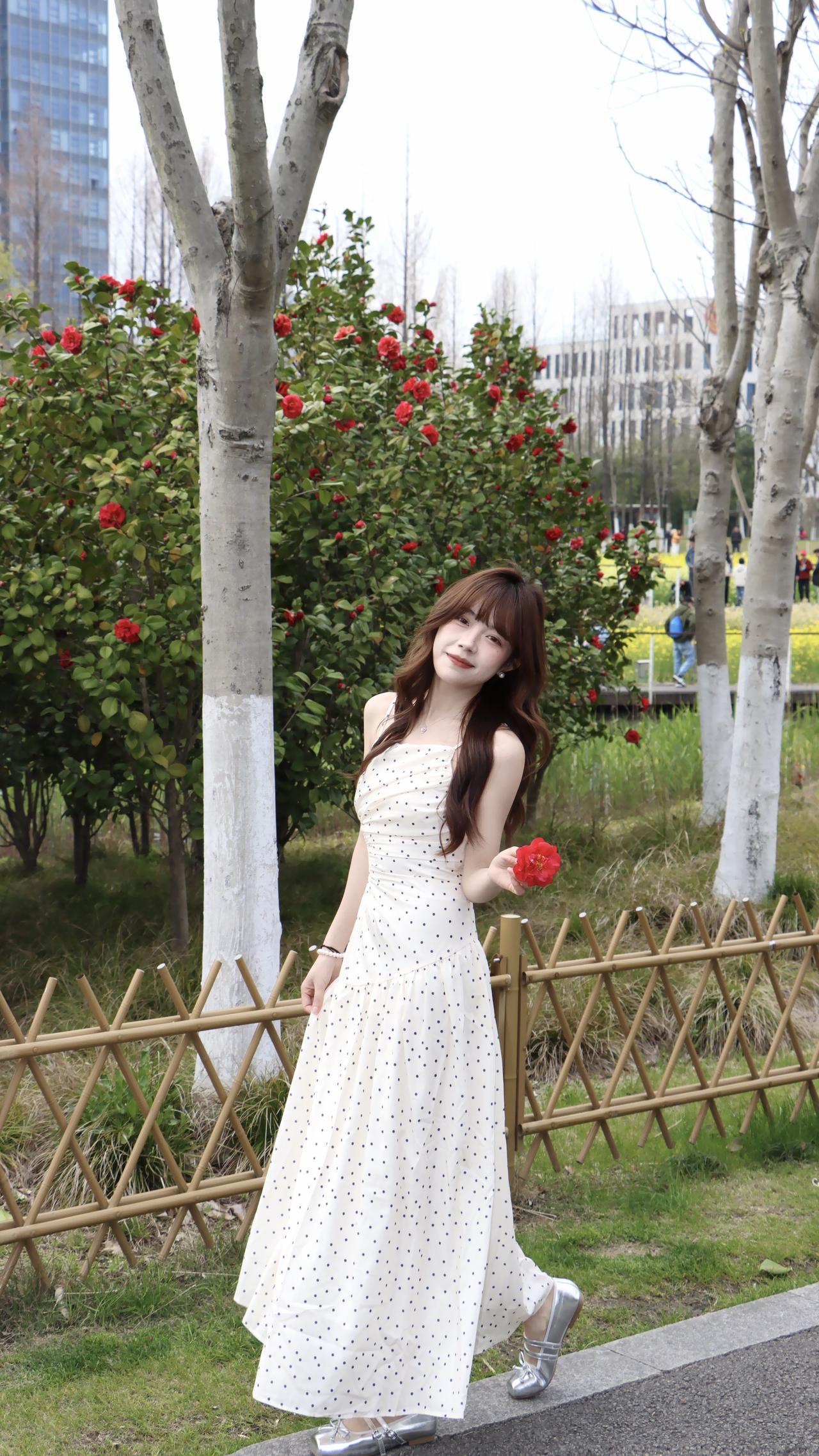 早春穿搭公式:波点吊带长裙➕珍珠饰品 满满的法式温柔 ootd穿搭 po图晒