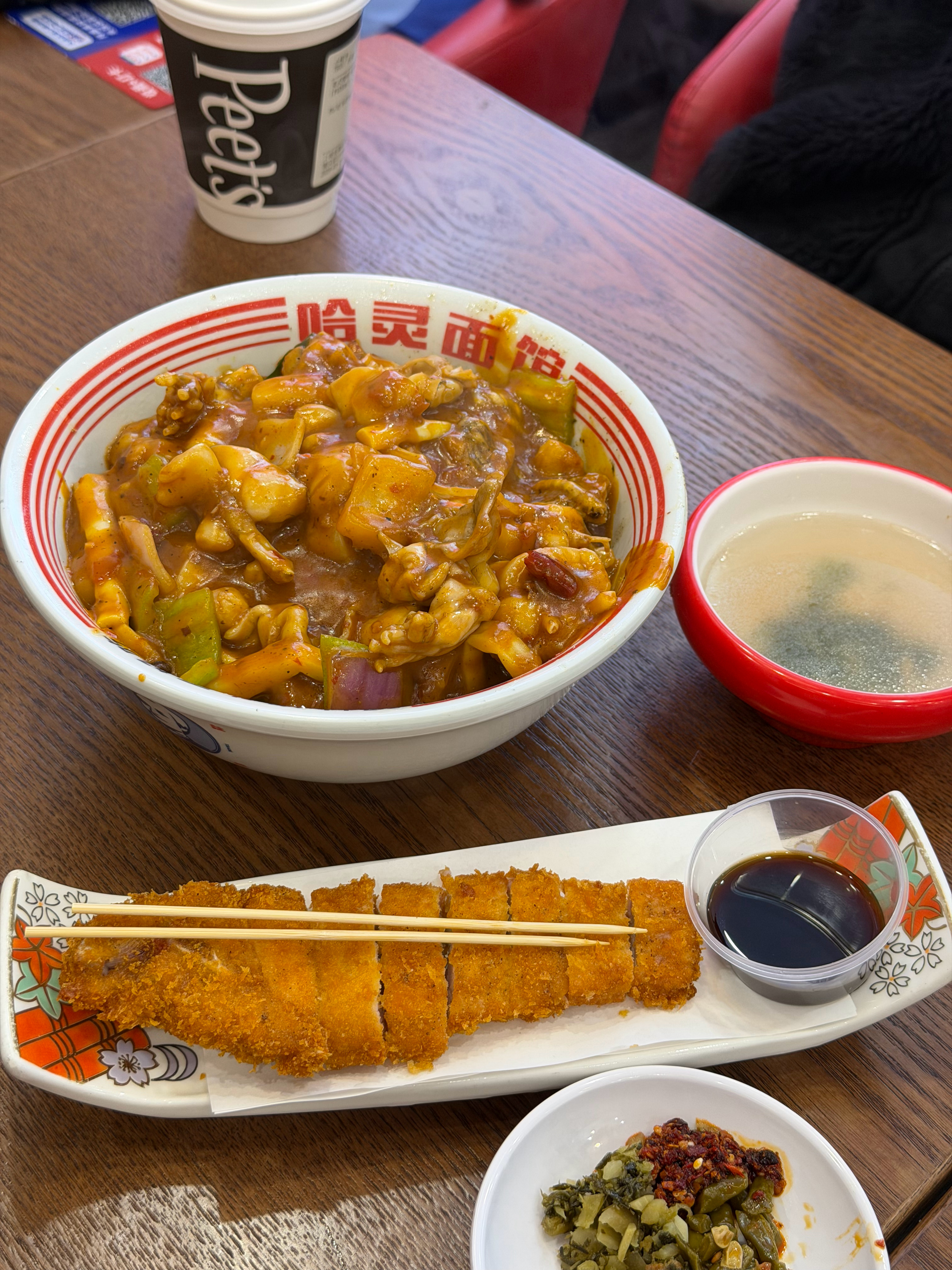 今天拍摄的工作餐,哈灵面馆招牌牛蛙面,据说结合了上海、东北、新疆风味,肉质确实新