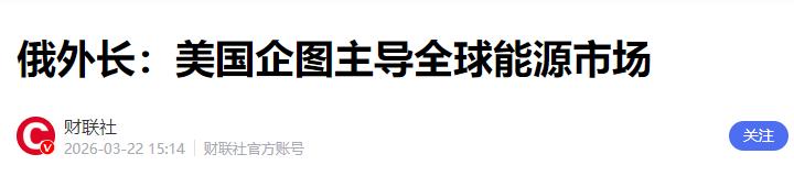 俄罗斯传来消息! 3月22日,俄罗斯外长拉夫罗夫突然对外宣布了一件大事,他说美国正在想尽办法主导全球能源市场,为了达到这个目的,美国使用了政变、绑架甚至暗杀的手段,这一切都是因为石油。 石油是生活里离不开的“硬通货”,不管是开车、发电,还是生产各种工业品,都离不了它。谁能掌控全球的石油,谁就能在世界上说话有分量,既能赚大把的钱,还能反过来牵制其他国家,这就是美国一心想主导全球能源市场的根本原因。 拉夫罗夫在采访里明确说了,从委内瑞拉到伊朗,美国为了控制这些国家的石油资源,没少干坏事。就说委内瑞拉,这个国家的石油储量非常丰富,美国早就想把它的石油攥在自己手里。 从2025年8月开始,美国就不断给委内瑞拉施压,先是悬赏5000万美元缉拿委内瑞拉总统马杜罗,还诬陷他涉嫌贩毒,之后又吊销了相关企业的能源开采许可证,甚至在委内瑞拉沿海集结军舰,发动军事打击,强行把马杜罗夫妇带到了美国。 不光是这样,美国的华尔街资本也在背后推波助澜,那些投资者游说美国政府,就是为了能在委内瑞拉的石油产业里分一杯羹。 美军突袭委内瑞拉之后,华尔街的投资者们一天就赚了40亿美元,而委内瑞拉的石油销售收入,也被美国政府强行控制起来,相当于美国直接把人家的“钱袋子”抢了过去,这种做法,跟强盗没什么区别。 除了委内瑞拉,伊朗也没能逃过美国的毒手。拉夫罗夫提到,美国甚至不惜暗杀伊朗的高层领导人,就是因为伊朗的石油资源丰富,而且一直不服从美国的控制,成了美国主导能源市场的绊脚石。 美国就是这样,只要哪个国家的石油资源能威胁到它的利益,或者不跟它一条心,它就会动用各种手段打压,哪怕是违背国际道义,也毫不在乎。 拉夫罗夫还特意指出,美国除了在全球范围内抢夺石油资源,还有一个明确的目标,就是把俄罗斯从整个欧洲能源市场挤出去。 大家都知道,以前欧洲很多国家,都是靠进口俄罗斯的天然气和石油过日子,又便宜又方便,俄罗斯也能通过出口能源,获得不少收入。但美国看着眼馋,一直想取代俄罗斯的位置,把欧洲的能源市场据为己有。 为了达到这个目的,美国做了很多小动作。最明显的就是2022年,俄罗斯向欧洲出口天然气的“北溪”管道,突然遭到了破坏,后来俄罗斯对外情报局局长证实,这起事件就是美国和英国的情报机构干的,他们用恐怖手段破坏管道,就是为了切断俄罗斯向欧洲输送能源的通道。 管道被破坏后,欧洲的天然气供应紧张,价格暴涨,美国就趁机向欧洲大量出口液化天然气,赚得盆满钵满。 有数据显示,光是2024年11月份,美国对欧洲的液化天然气出口量就达到了509万吨,占美国液化天然气总出口量的68%,比10月份的占比高出了20个百分点。 而且美国还施压欧洲,让欧洲承诺在三年内购买价值7500亿美元的美国能源,就是想彻底取代俄罗斯,成为欧洲最主要的能源供应国。 可能有人会问,欧洲为什么会听美国的?其实欧洲也是被逼无奈,美国靠着自己的霸权地位,不断向欧洲施压,加上“北溪”管道被破坏,欧洲没有更好的选择,只能被迫从美国进口能源。 但这样一来,欧洲的老百姓就遭殃了,天然气、石油价格上涨,生活成本越来越高,而美国却坐收渔利,一边赚着欧洲的钱,一边还巩固了自己在能源市场的主导地位。 拉夫罗夫还强调,美国奉行的原则,就是自己的利益高于一切,不管什么国际协议,只要不符合美国的利益,他们就会无视。 不管是过去还是现在,美国都乐意见到俄罗斯被挤出欧洲能源市场,因为这样一来,俄罗斯就会失去一大笔收入,实力也会被削弱,美国就能更轻松地掌控全球能源市场,巩固自己的霸权。 这件事虽然只是拉夫罗夫披露的一些真相,但背后反映的,是美国的霸权野心。美国为了抢夺石油,掌控能源市场,不惜动用政变、绑架、暗杀这些极端手段,欺压弱小国家,挤压俄罗斯的生存空间,这种做法,不仅伤害了其他国家的利益,也破坏了全球的能源秩序。 拉夫罗夫这次站出来说话,就是要把美国的丑事公之于众,让全世界都看清楚美国的真实面目。美国以为靠强权就能一手遮天,就能掌控全球能源市场,但实际上,这种不顾国际道义、只为自己牟利的做法,迟早会遭到反噬。 俄罗斯也不会任由美国挤压自己的空间,会坚决捍卫自己的利益,而那些被美国欺压的国家,也迟早会站起来反抗。 说到底,美国的野心再大,也改变不了公道自在人心的道理。靠霸权和暴力,永远不可能真正掌控世界,只有尊重各国的利益,遵守国际规矩,才能实现全球能源市场的稳定发展。 拉夫罗夫的这番话,也给全世界提了个醒,一定要警惕美国的霸权行径,不能让美国再为所欲为,祸害整个世界。
