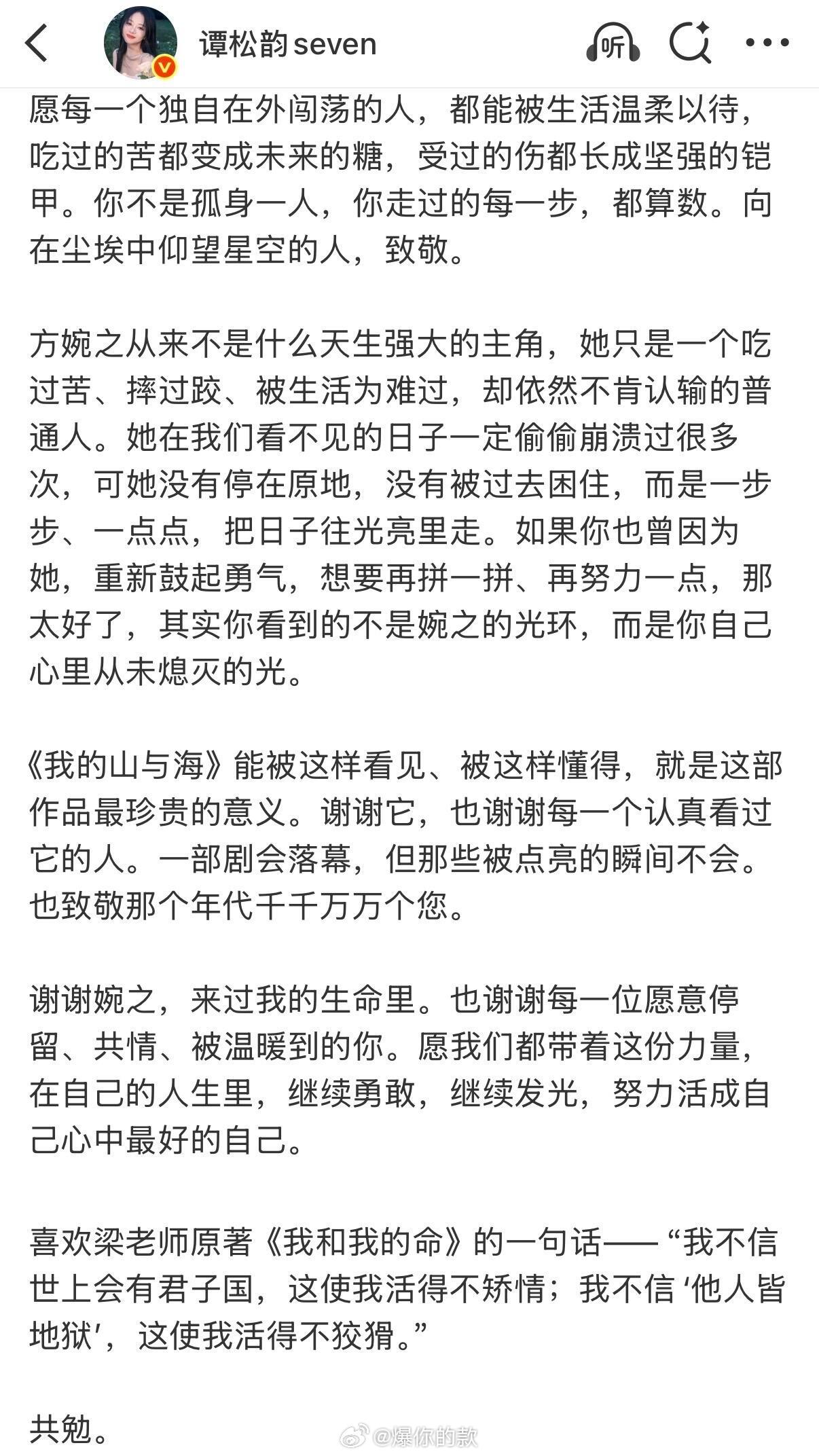 谭松韵长文告别方婉之