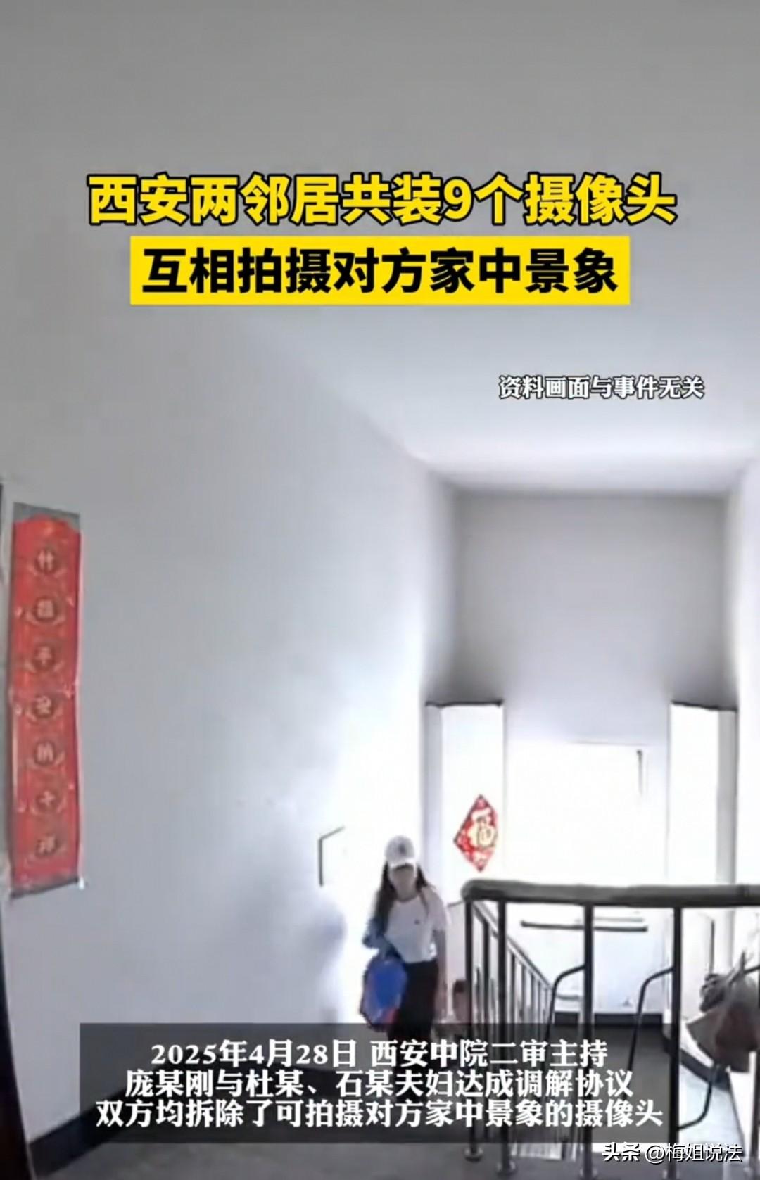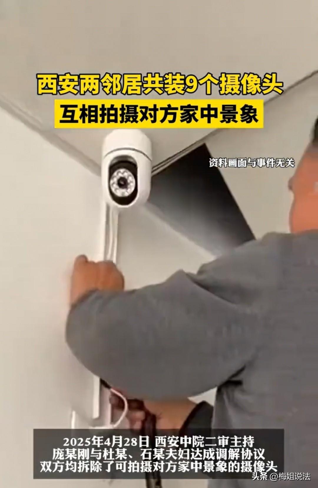 西安,杜某夫妇在自家大门外一口气装了9个摄像头,邻居庞某刚一看这阵仗,觉得隐私被全方位看完了,当场也装摄像头正面对视。一来二去,两家人直接闹到水火不容,社区多次调解都没谈拢,最后庞某刚干脆把杜某夫妇告上了法庭。一审判决后,杜某夫妇不服气,又提起上诉,二审法院只好再次出面调解。 杜某和石某这对夫妇,性格本就比较好强,在邻里间也是那种非常强势的“硬骨头”,平时说话办事都带一股不服输的劲儿。 也正因如此,强势的性格让他们和邻居庞某刚早早产生了隔阂,平时见面顶多点点头,关系并不融洽。 这天,庞某刚看着门口密密麻麻的摄像头,心里直犯嘀咕,找他们理论:“你们装这么多镜头,我进出家门、甚至屋里啥样都被看光,这还能有隐私吗?” 可杜某夫妇理直气壮,双手一摊:“装在自家门口,天经地义!我们就是防小偷、留个证据,又不是故意偷窥你,大惊小怪什么?” 庞某刚可不买账,觉得对方纯属强词夺理。在和对方多次沟通无果后,他直接“以牙还牙”,也买了摄像头装上了,心想:你能装,我为什么不能装? 结果杜某夫妇更不服输,抱着“你安我也安”的心态,继续买来多方位的摄像头,完全就是想和庞某刚较真到底,主打一个“气势不能输”。 庞某刚也针尖对麦芒,协商不成便继续加装。 就这样,你安一个,我安一个,直到杜某夫妇安装了九个摄像头后,庞某刚终于忍受不了了——这日子简直没法过了! 他直接找到社区要求帮忙讨要说法,委屈地表示:自己是被动安装摄像头,根本不想走到这一步,再这样没完没了,双方都生活不好。 可是杜某夫妇却振振有词,称自己只是在行使权利,安装摄像头是为了安全,并没有想偷窥庞某刚的隐私,反而是庞某刚“以小人之心度君子之腹”。 双方互不相让,社区调解也彻底谈崩了。 随后,庞某刚不再惯着这对夫妇,直接起诉了对方。 一审法院认为,杜某夫妇安装9个摄像头对着邻居,且是事件的主要引发方,行为明显过度,因此责令他们撤除所有的摄像头。 但杜某夫妇不服,提起上诉,觉得“一个巴掌拍不响”,肯定是双方原因才造成这样的局面,凭什么只拆我家? 后来二审法院再次进行调解,法官苦口婆心地劝道:“远亲不如近邻,既然成为了邻居,那就是缘分,何必把日子过成‘谍战片’呢? 大家都退一步,站在对方的角度去看待问题,不要把邻里关系搞得如此之僵。” 最后,双方在法官的调解下都认识到了自己的不足,为了保住邻里缘分,都主动提出愿意拆除各自的摄像头。 这场“摄像头互怼大战”终于得到解决,闹剧正式收场。 《民法典》第一千零三十二条规定:自然人享有隐私权。任何组织或者个人不得以刺探、侵扰等方式侵害他人的隐私权。 杜某夫妇装9个摄像头,已拍到庞某刚出入及住宅内部,严重打扰对方生活安宁,超出正常安防范围,构成隐私侵权。 庞某刚反向安装对抗,同样侵权,双方都越界了。 《民法典》第二百八十八条规定:不动产的相邻权利人应当按照有利生产、方便生活、团结互助、公平合理的原则处理相邻关系。 两家互相对着装监控,完全违背互谅互让的相邻原则。 法院调解双方共同拆除,既是依法制止侵权,也让邻里关系回归正常。 对于这场“摄像头互怼大战”,你怎么看?素材来源于陕西新闻