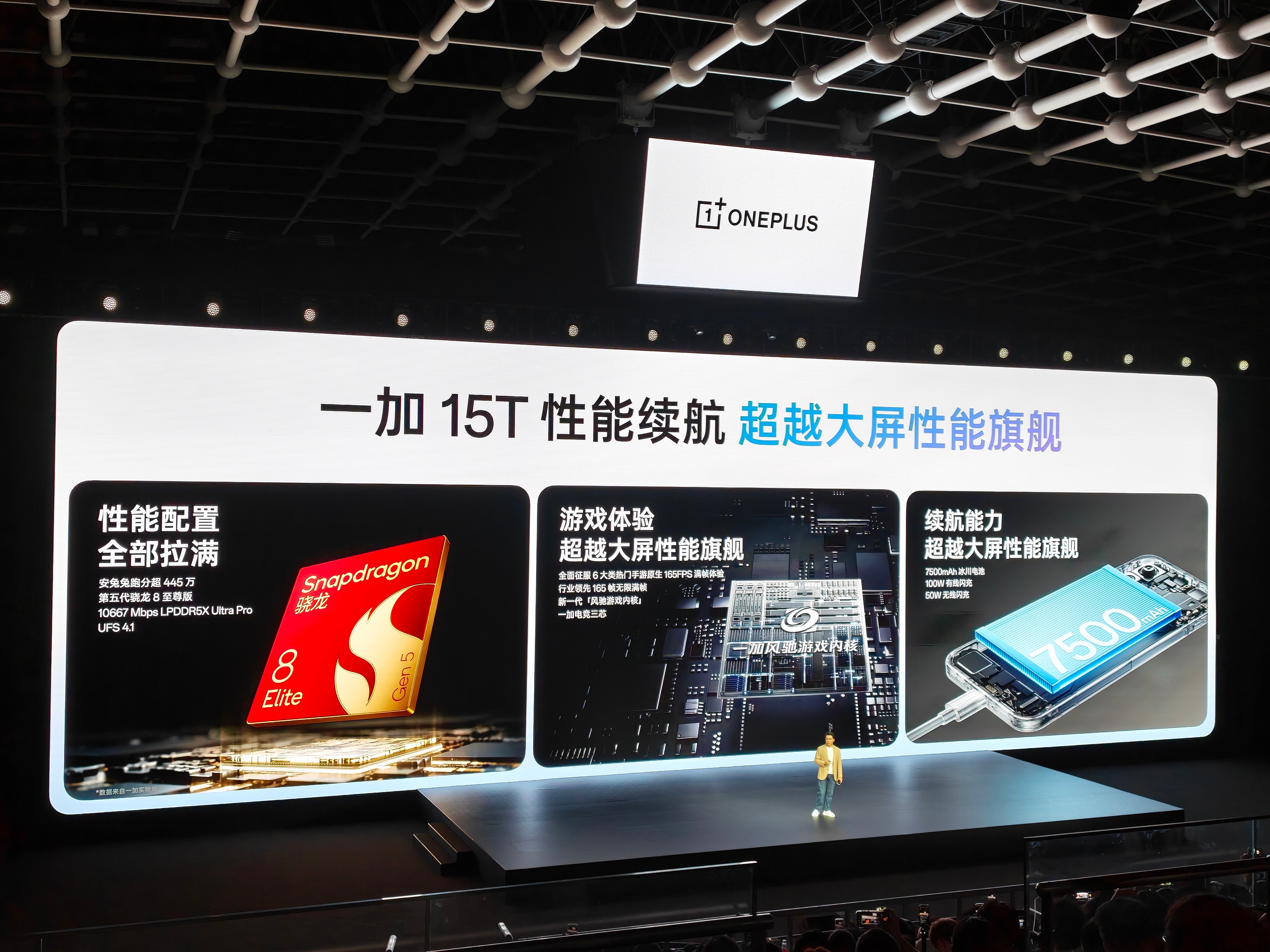 一加15T 续航超 Pro Max,搭载小屏手机最大的 7500mAh 超巨量冰川电池,在小巧机身中实现了超越 Pro Max 机型的续航表现,支持 MOBA 开黑满电到关机 10.3 小时、刷 B站满电到关机 40.5 小时,续航霸榜小屏手机!把大象装进了冰箱里,这个对于小屏幕手机来说真的香了。