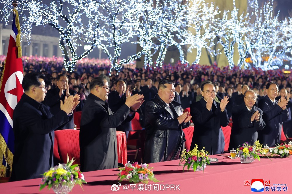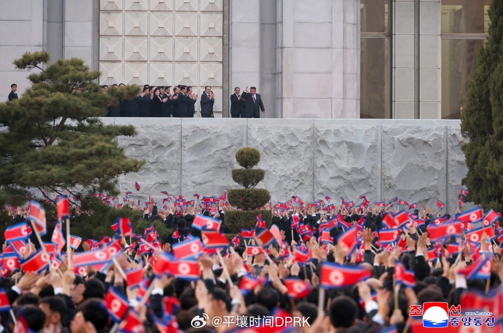 金正恩同志向以精彩的文艺演出始终不渝地热烈支持共和国政府的表演者深表谢意,并向热情欢呼的群众挥手致意。