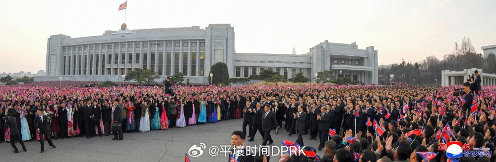 金正恩同志跟第十五届最高人民会议议员一起步入观众席。全体观众和表演者发出了热烈的欢呼声,向高尊严的我们党和国家以及人民的最高代表者、一切胜利与光荣的旗帜——金正恩同志致以最大的敬意和光荣。