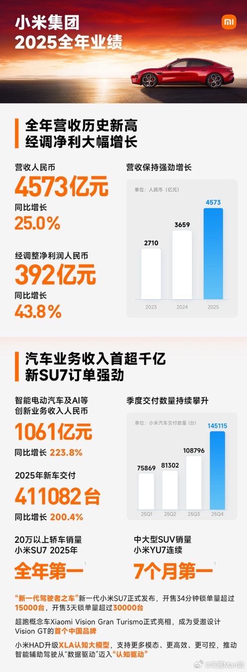 小米2025年新车交付411082辆