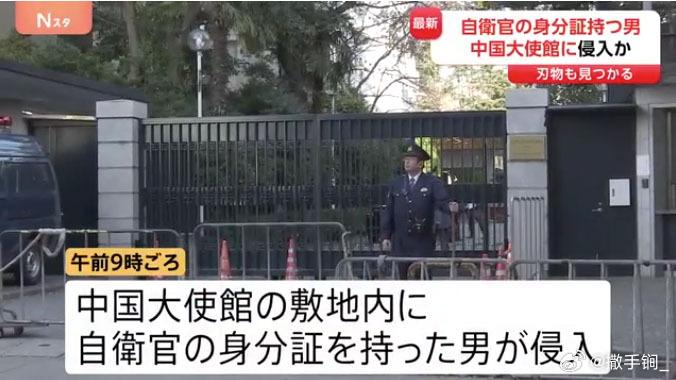 倭寇陆上自卫队现役三等陆尉携刀具闯入中国驻日大使馆欲刺杀中国驻日大使 日媒称今天