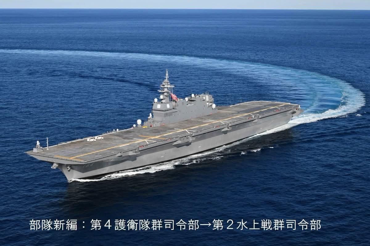 日本海上自卫队23日实施大规模组织调整,正式废除“护卫舰队”及“扫海队群”编制,改组为新的“水上舰队”,并下辖3个“水上战群”、1个“水陆两栖机雷战群”及1个“哨戒防备群”;通过改编与提升指挥控制效能,持续强化防卫力量。 鉴于海上自卫队面临警戒监视任务繁重、舰艇调配紧张等挑战,防卫省继去年颁布构想后,于23日正式实施大规模改组,将以往注重区域部署特性的“护卫舰队”改编为“水上舰队”,而专责扫雷任务的“扫海队群”则改称“水陆两栖机雷战群”;新设立的“哨戒防备群”将配备最上级护卫舰和“樱级”巡逻舰,专司海域巡逻与警戒监视任务。 新设的“水上舰队”司令部,以及下辖的“第1水上战群”和“哨戒防备群”指挥部均位于本州中部的横须贺,“第2水上战群”指挥部设于邻近九州的吴市,“第3水上战群”指挥部则设于本州北部的舞鹤;而“水陆两栖机雷战群”司令部设于九州佐世保,并编入运输舰及扫雷艇,与陆上自卫队“水陆机动团”配合,执行离岛防卫作战。 3支水上战群分别以“出云号”(DDH-183)、“加贺号”(DDH-184)与“日向号”(DDH-181)为旗舰;以“第2水上战群”为例,其下辖编组3支水上战队,共纳入2艘宙斯盾舰及9艘护卫舰,分驻于横须贺、佐世保与横滨;通过精简部队行政编制、提升多元任务协调与指挥控制效能。 【蠢蠢欲动】