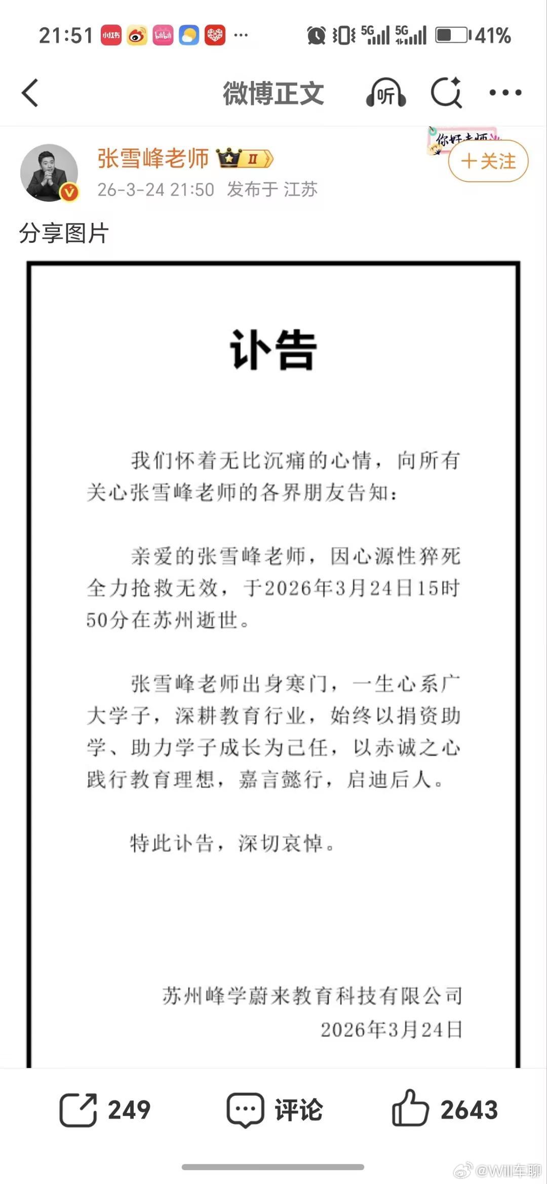 张雪峰真的走了,全网四千万粉丝,全平台头部教育博主!