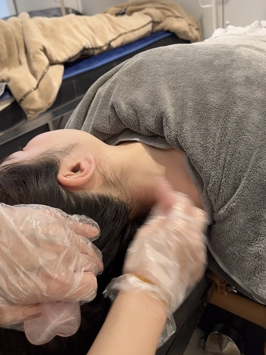 在动车上打了☎️预约,拖着行李箱就来了 这家啊姐的按摩手法很给力,头皮放松按摩,到肩颈的拨经,用茶麸水洗头,整个过程40分钟,完全放松,很适合低头族或者旅途疲惫的人。。。 而且茶麸洗完头发会很蓬松顺滑,洗完整颗头都轻松了! 啊姐很热情,每一步都会提前告知,一直问我力度够不够,水温合不合适 - 真的可以冲!!这里地理位置也方便,楼下很多柳州特色小吃,吃完直接去洗个头舒舒服服!!信我!!
