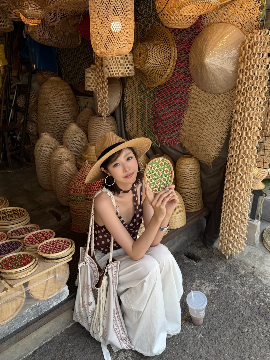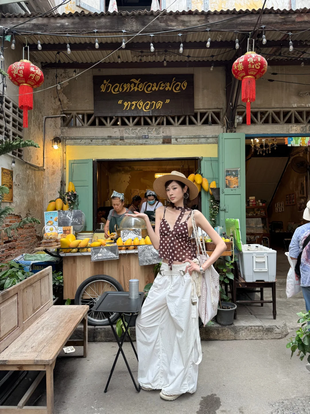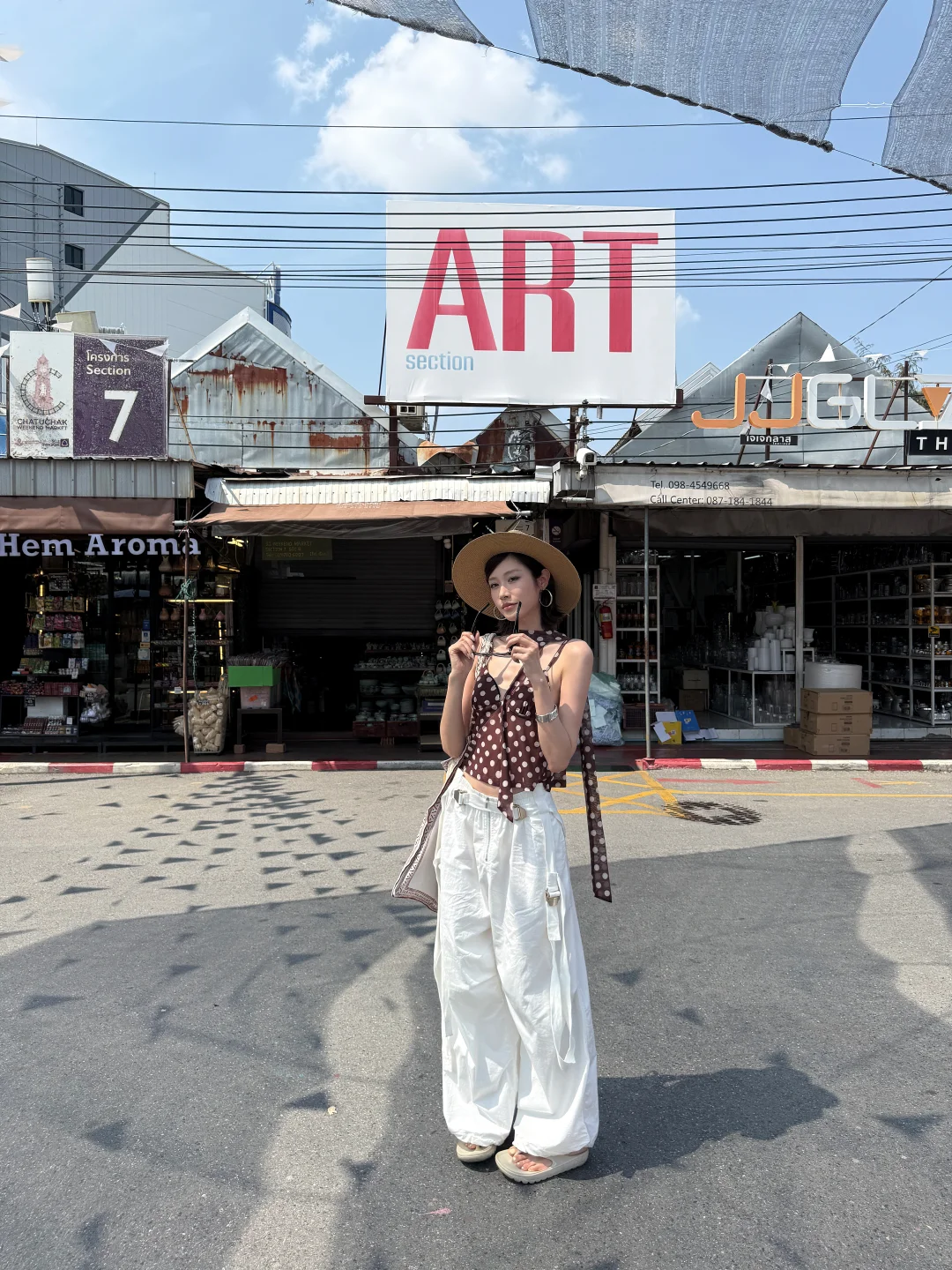 泰兰德 曼谷 乍都乍周末市場 旅行穿搭 ootd 度假穿搭 夏日穿搭 穿搭灵感 波点吊带 百搭长裤
