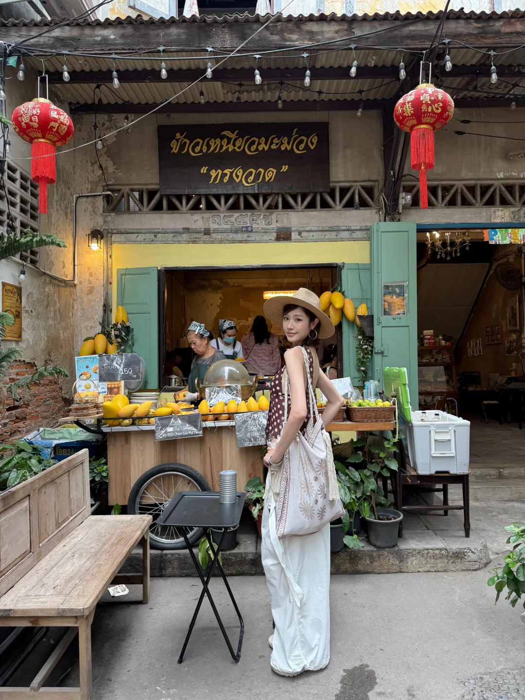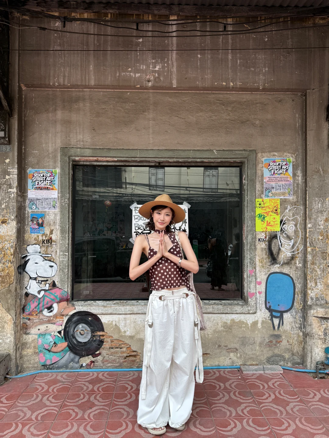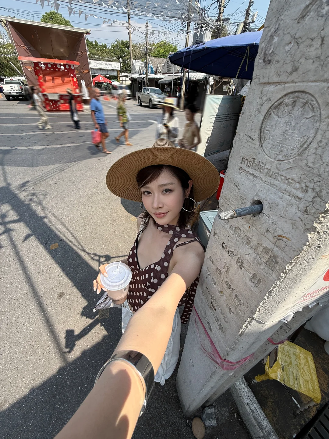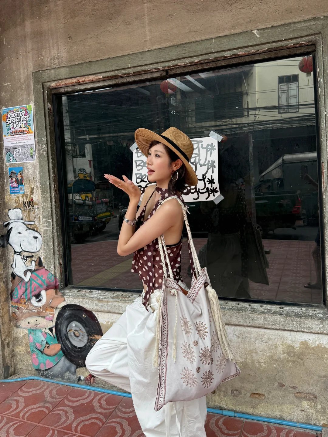 泰兰德 曼谷 乍都乍周末市場 旅行穿搭 ootd 度假穿搭 夏日穿搭 穿搭灵感 波点吊带 百搭长裤