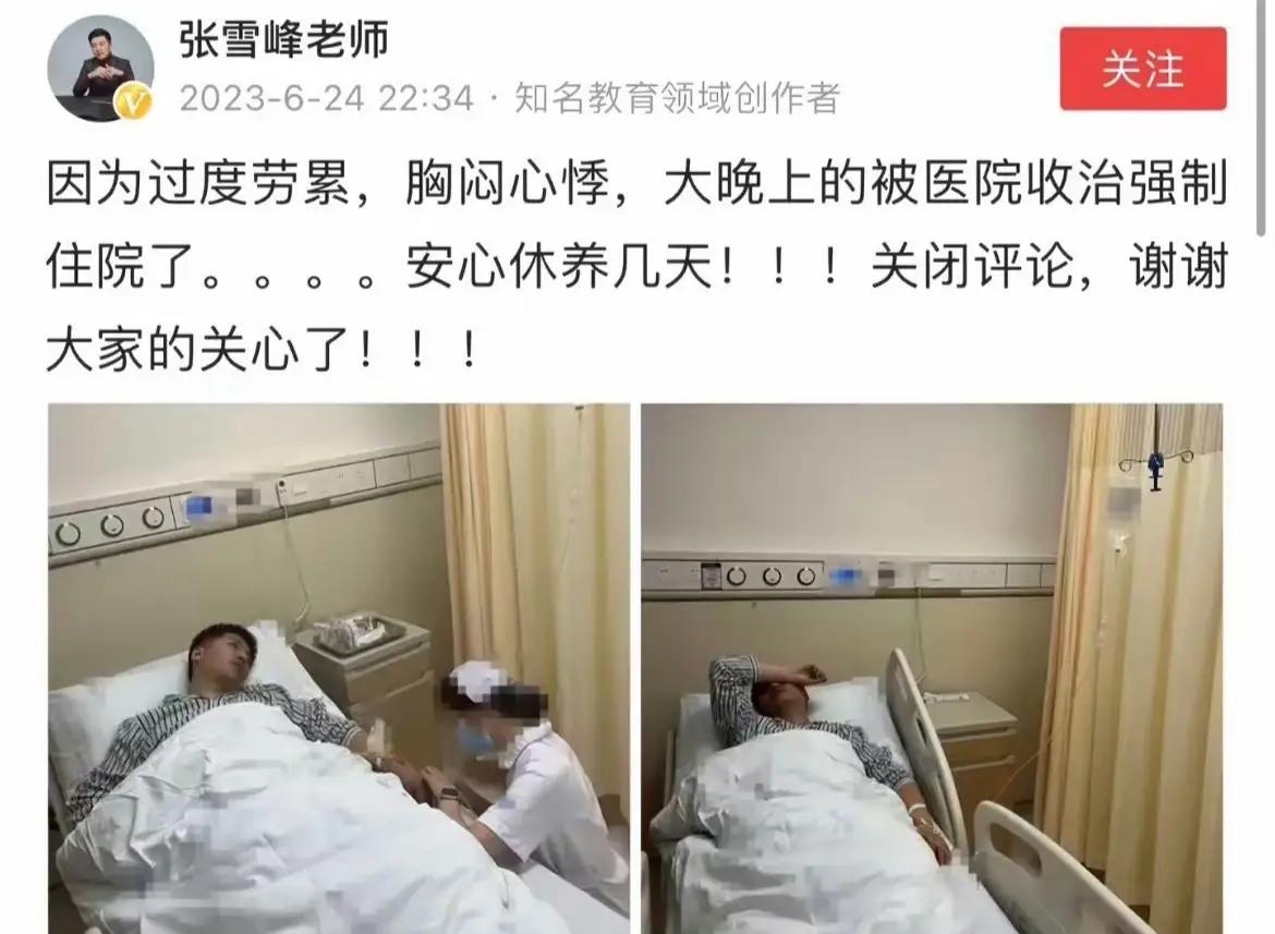 看新闻说张雪峰老师离开了,令人痛心,之前看过不少他的直播,他的直播对于很多人还是非常有帮助的,当然也有的人对他的话看不上,但总体而言他说出了很多人不敢说的话,也帮助到了很多人,没想到41岁就因为猝死离开了人士,太可惜了,其实之前他就因为心脏不舒服住过院,可惜没能引起足够的重视,他自己也说过度劳累病倒了,其实他早就财务自由了,完全可以退休养老了,可还是为了事业,为了家庭奋斗,面临的压力很大,也非常劳累,所以也提醒很多人,到了一定的年纪所谓的事业名利都要看淡一点,身体才是革命的本钱,拥有健康才能拥有一切!最后希望张雪峰老师一路走好!