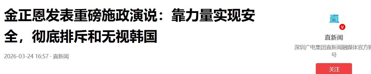 朝鲜领导人发表演说公开抨击美韩! 近期,朝鲜最高领导人通过朝中社发表施政演说。这篇演说分量极重,直接给韩朝关系定了性。 韩国不再是同胞兄弟,而是被正式贴上“头号敌国”的标签。这绝不是随便说说的气话。 对待这个“头号敌国”,朝鲜的态度异常强硬。只要韩国敢有任何挑衅,朝鲜的还击将毫不留情。 平壤方面说得很明白,以后就是要用最明确的言辞和行动,彻底无视并全面排挤韩国。 为什么选在这时候发难?这就得看现在的国际大局,全球目光都盯着中东,美伊冲突正酣。 美国为了填补中东窟窿,甚至开始从韩国抽调防空系统。亚太这边的防线,明显出现空隙了。 这就是绝佳的战略窗口期。美军深陷中东,特朗普政府的精力全被伊朗问题牵扯。朝鲜这波操作,就是看准了美国现在根本顾不上半岛,趁你病要你命,时机拿捏得死死的。 但朝鲜这回的策略非常精明。金正恩在演说里批评美国,说他们在世界各地搞恐袭和侵略。 明眼人都知道这是在骂美国打伊朗。但有意思的是,通篇演说他就是没有直接点名特朗普本人。 相比之前火力全开的架势,这次的表态明显克制不少。这就是在给特朗普留面子。既亮出强硬拳头,又避免跟华盛顿直接撕破脸。打一巴掌揉三揉,为以后的谈判对话留足了后路。 调转枪口对准韩国,是为了化被动为主动。美国满脑子都是中东,朝鲜可不想变成无人问津的配角。 既然美国人没空搭理,那就狠狠敲打你的小弟。把半岛局势的主导权牢牢抓在手里。 韩国这下可是真慌了。平时全指望美韩同盟撑腰,现在大哥把防空导弹搬去中东救火,自己防御空虚。 偏偏这时候被指着鼻子骂“头号敌国”,这严峻的安全考验,够青瓦台喝一壶的了。 朝鲜敢这么硬气,底气到底在哪?金正恩说得很透彻,国家尊严和最后胜利,只能靠最强有力的力量来保障。说白了,就是手里的核武器,真理只在大炮射程之内。 看看委内瑞拉,看看伊朗和古巴,美国对这些国家向来是喊打喊杀。 凭什么对朝鲜就得掂量掂量?还不就是因为朝鲜硬是把核武器搞出来了。有了这个护身符,美国就不敢轻举妄动。 这一套非对称战略玩得确实漂亮,精准捕捉美国的战略空隙,把对韩施压和对美克制分得清清楚楚.