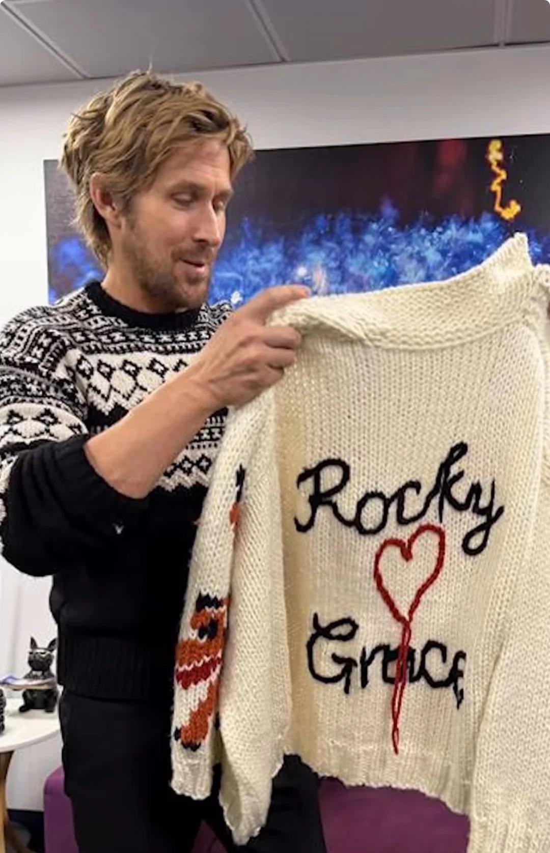 英国的跳水奥运冠军托马斯·戴利给瑞恩·高斯林织了一件《挽救计划》中的毛衣,背后写 英国的跳水奥运冠军托马斯·戴利给瑞恩·高斯林织了一件《挽救计划》中的毛衣,背后写着: Rocky ❤️ Grace