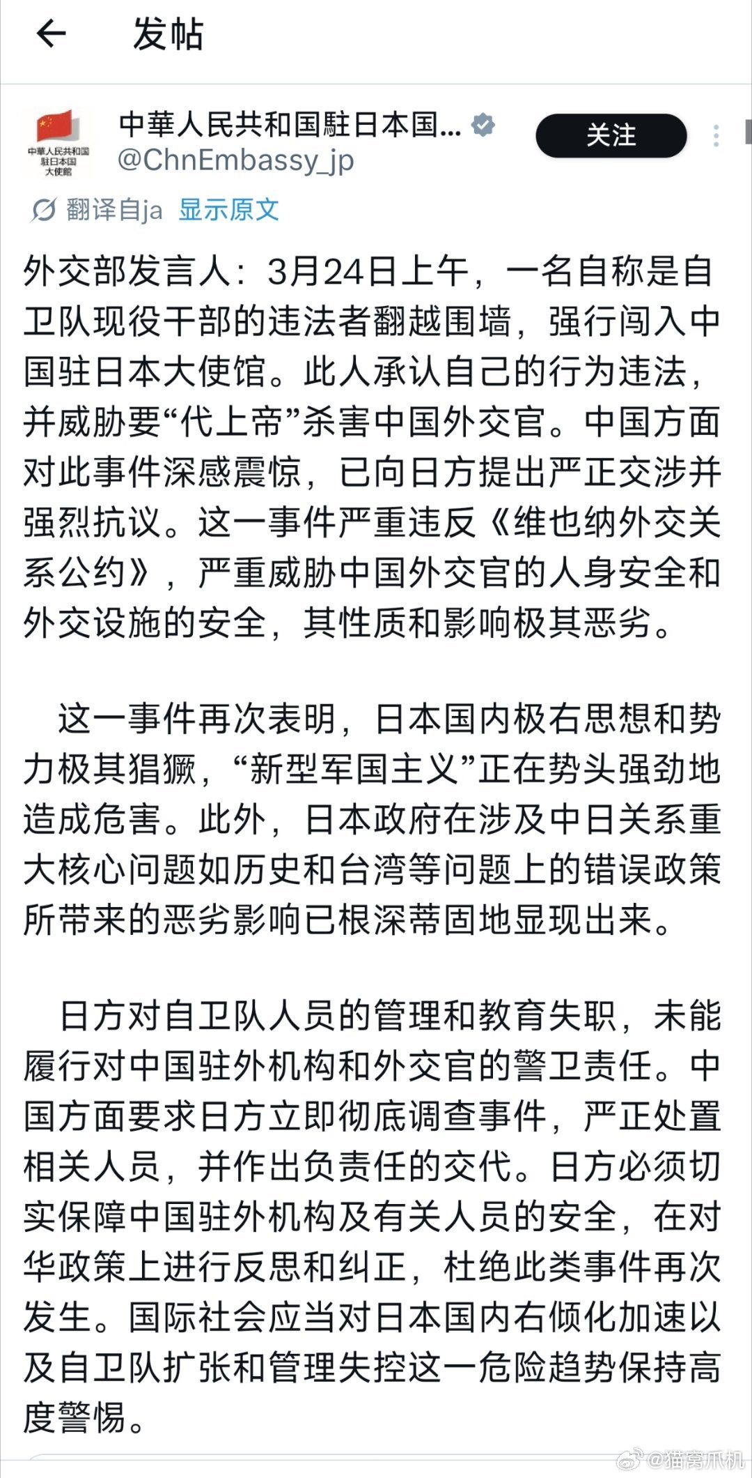 日本人都觉得自己做的不对,怎么还有人反思和质疑上了?自称日本自卫队人员闯入中国使馆