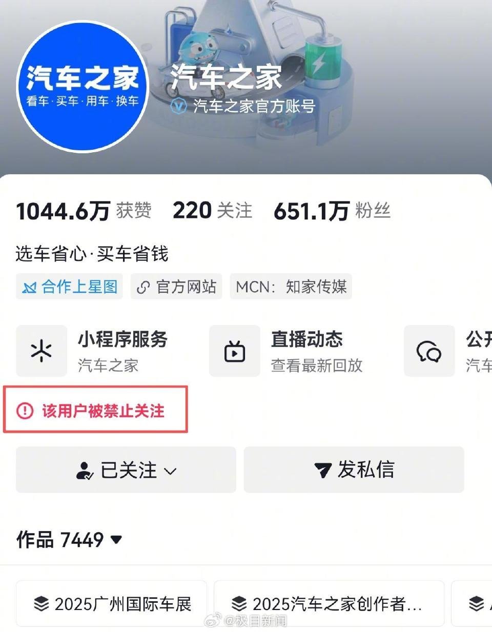 汽车之家多平台账号被禁止关注,汽车之家曾被网信办点名批评汽车之家账号禁止关注疑因互动违规