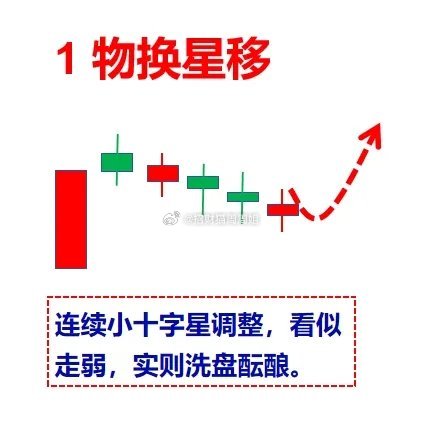 遇到这4种K线信号,说明主力已强势入场,果断放手干,或将拉升走出大波浪,值得收藏! 1、物换星移看似愁,忽悠小散出货中→拉升随即往前冲。 2、碎步平台要留意,多空平衡拉锯战→竖起空间打高度。 3、两阳夹缝整理中,逼迫空头要放手→旱地拔葱在后头。 4、三阴三阳走对称,空多易位转折现→趋势走出大波浪。
