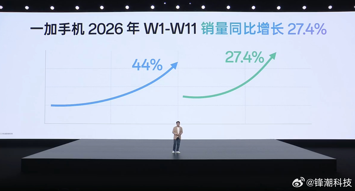 一加开始秀销量成绩了。李杰重点强调了销量增速。