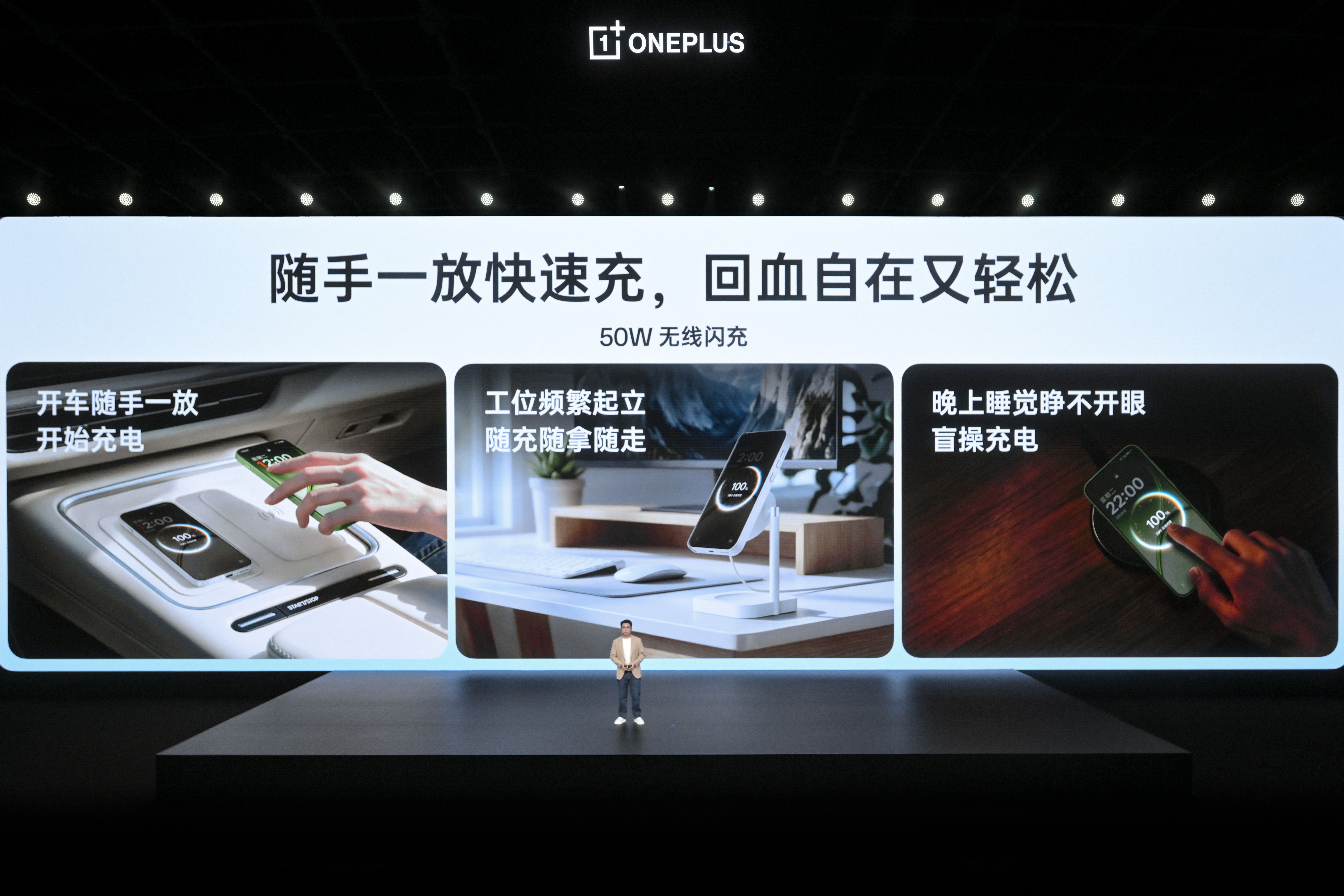 超大电池之外,一加15T更搭载 100W 超级闪充 + 50W 无线闪充的豪华续航组合,30 分钟即能充至 61%,随手一放即刻蓄能,让充电更自然无感;一加15T支持「全局旁路供电」功能,边充边玩时电源可直接绕过电池为系统供电,避免手机发热降频,有效保护电池健康。