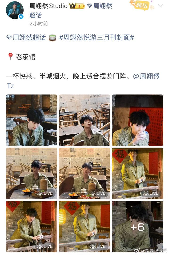 周翊然1天5组物料周翊然58张新图工作室今日疯狂放饭,一天五组物料惊喜不断,58张新图里熟男与少年感无缝切换!