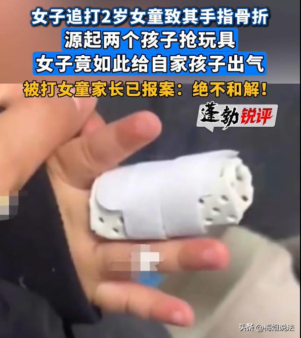 安徽六安,在一家饭店里,店主的2岁女儿,跟顾客的2岁女儿,两个小家伙因为一个玩具车发生了争执,店主女儿不小心挠了顾客女儿一下,小孩妈妈闻声赶来,抱着自家娃就准备找店主家2岁女儿“讨说法”。对着2岁的女童狠狠的抽打,眼看着连续抽打女童的小手长达十几秒,服务员阻止都没有用。直到店主夫妻俩赶过来,这个孩子的妈妈才停止。 事后,女顾客叫嚣:“怎么了,我就是给我孩子出气呢!”这个“出气”真够狠的,一个成年人,把人家2岁女童的手指都给打骨折了。 蓬勃新闻3月22日报道了这则新闻。 这个新闻,让网友们血脉崩张啊。要知道,一个成年人,对一个2岁的女娃展开报复,任谁看了不心疼啊?你家的孩子金贵,人家的娃也是十月怀胎生出来的啊。 我们来看下案件的详细经过。 在六安的一家饭店里,一位女顾客带着她2岁的女娃来吃饭。 这个妈妈也不看管好自己的孩子,小孩当时就溜到厅里去玩玩具。当时小孩一个人在玩,没多久,店主家2岁的女娃,也过来想玩。 可能这个玩具就是店主家女儿的玩具,小孩就这样,自己不玩的时候,玩具丢老远也不管;当有人要玩自己玩具时,她也心痒了,铁定要来抢。 两个奶娃子,当时就因为争夺这个玩具车,开始发生了争执。店主家女儿可能不小心挠到了顾客女儿的手,对方就开始“哇啦哇啦”大叫。 一开始这娃的妈妈不管,听到孩子叫, 她立刻循声赶过来。 女顾客不管三七二十一,先把自己的女儿抱起来,回头就恶狠狠的朝着店主女儿冲过去了。 趁着店主女儿一个不注意,这个妈妈先是“啪啦”一声,猛的抽打了女童的小手。 小孩儿一下子就被吓住了,之后意识到疼了,瞬间就大哭起来。 然而,这个凶狠的妈妈可没有准备放弃哦,而是继续给自己的女儿出气,不断的抽打店主的女儿。 根据监控画面显示,这位不讲道理的妈妈,前后抽打女童的小手,长达十几秒。 一旁的服务员试图阻止,但是也不能劝服这位“愤怒的”、一心想要给孩子“出气的”妈妈,把人家店主的女儿打的“嗷嗷”直哭。 直到店主夫妇俩听到情况不对,赶过来查看情况的时候,这位妈妈才算住了手。 面对店主夫妇的指责,这位妈妈丝毫不道歉,而是嚣张的说:“咋啦,我是给我女儿出气!” 看这话说的,她的女儿宝贝呢,人家的女儿,就活该被你打吗? 店主夫妇俩暂时不理论,先报了警,然后赶紧带着孩子去医院,小孩的手红彤彤的,被那位妈妈打的火辣辣的疼。 去医院检查,医生很遗憾的告知——孩子情况比较严重,手指被打骨折。 听到这个结果,店主夫妇要气昏了,他们跟办案人员指出:“绝对不放弃维权!这件事依法办理,不接受任何和解,必须要让对方承担责任!” 事后,那位打人的女子已经被依法传唤,案件正在继续侦办中。 看看这件事,更加令人愤怒的是,施暴的女子竟然还试图用“保护孩子”来辩解,但是法律不会因为情绪就模糊了底线。 根据《刑法》第二百三十四条规定,故意伤害他人身体致人轻伤的,会被处以三年以下有期徒刑、拘役或者管制。 如果儿童被他人打到骨折,通过构成轻伤二级,已经达到刑事立案标准。 从案件来看,女子殴打的是2岁的女童,法律也有所规定,殴打不满14周岁的未成年人,属于法律中认定的从重处罚情节,在量刑时会从严把握。 所以说,法律会替弱小的孩子来撑腰。 这位女子的行为已经构成了严重违法,伤情鉴定为骨折,达到轻伤以及以上,这位女子会涉嫌“故意伤害罪”,将会面临3年以下有期徒刑、拘役或者管制。 在有些案例里,即便没有达到刑事标准,也至少会面临15日的行政拘留,并且还要承担全部民事赔偿,留下终身违法记录。 抽打人家2岁女孩的小手长达十几秒,她自己也是孩子的母亲,做出这样的事情,有没有考虑他人的感受? 据悉,这位被打的2岁女童,已经出现了“见到陌生人就躲避”的应激反应,可见给孩子幼小的心灵,也留下了不小的创伤阴影。 这份精神损害费用,也需要由施暴者来承担。 总之,这个案例看完令人气愤,这种人也配做妈妈吗? 大家说说看,遇到这样的人,是否应该严厉惩罚?