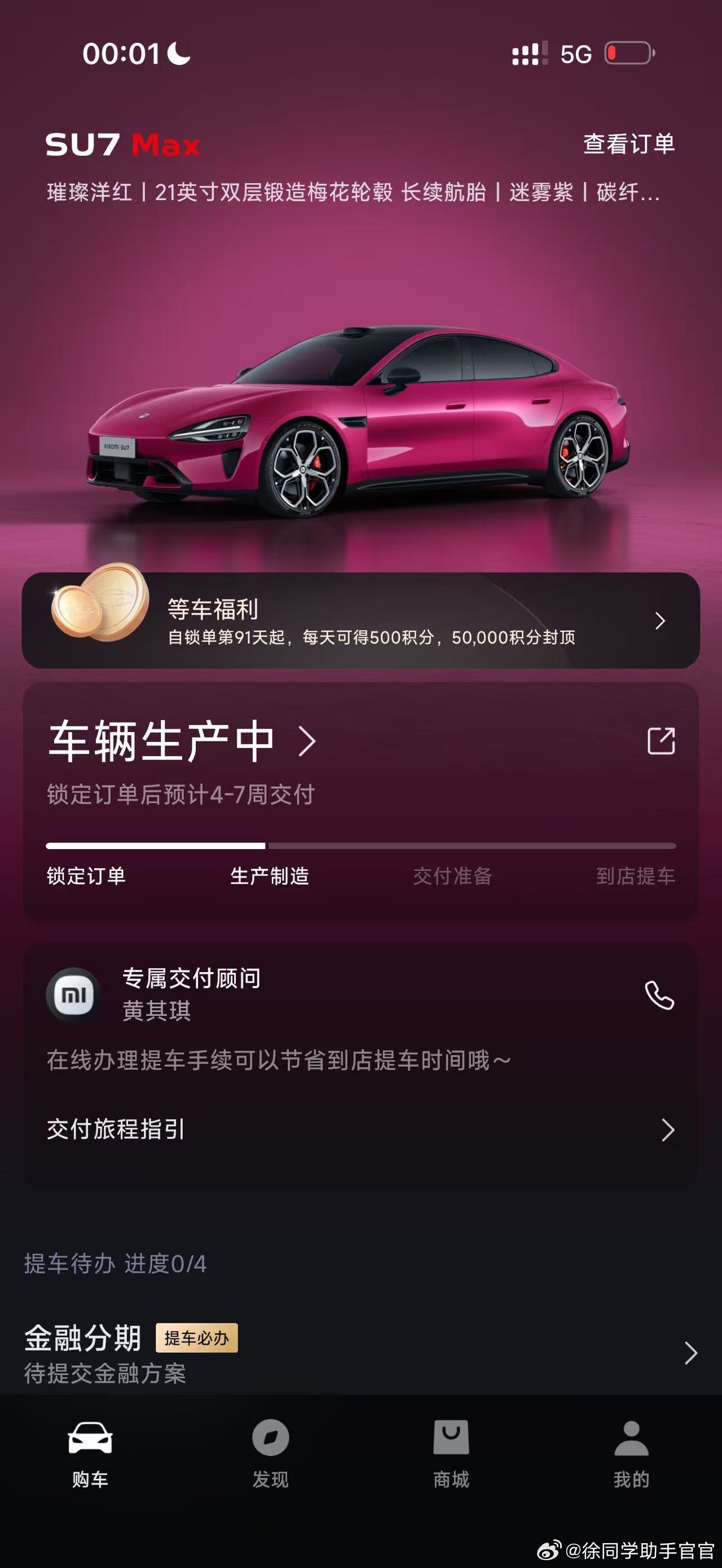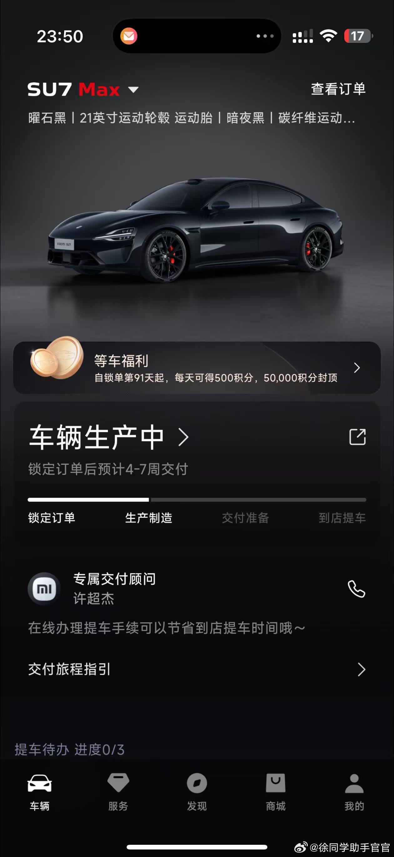 📈已锁单的周数分布1️⃣4-7周的基本为3月19日与3月20日的锁单预计4月7日左右排产,4月11日左右提车2️⃣5-8周的大多数也是3月19和3月20日的锁单预计4月14日左右排产,4月19日左右提车3️⃣6-9周的大多数为3月21日及以后的锁单预计4月底排产,五一左右提车(按照一年多对小米的预测经验,Max会更快!)