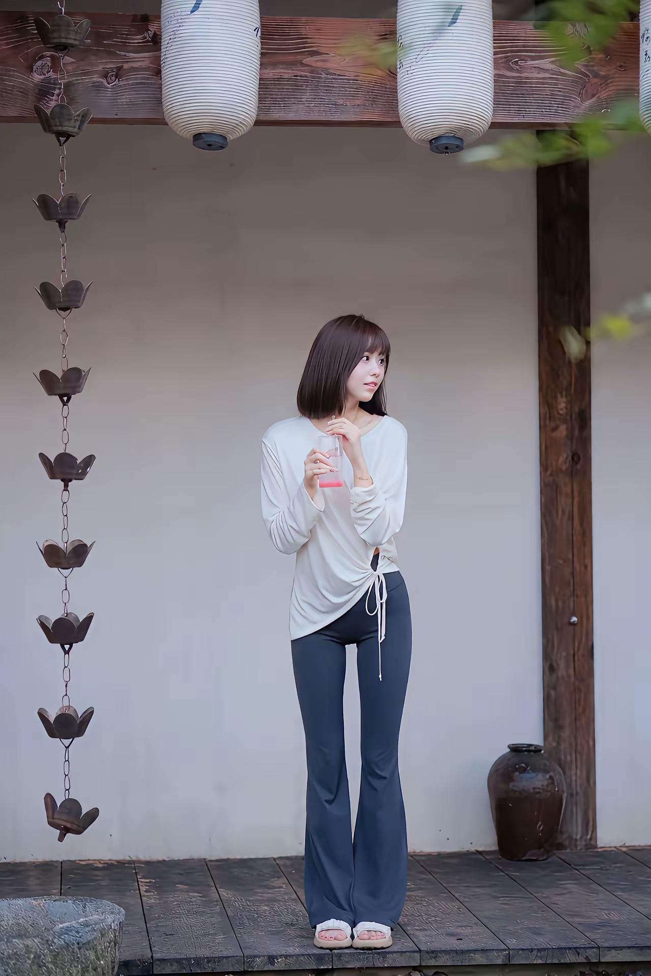 悠闲午后,坐在木制甲板上,享受一杯冰饮的惬意时光。清纯少女,活力四射女人最耐看的