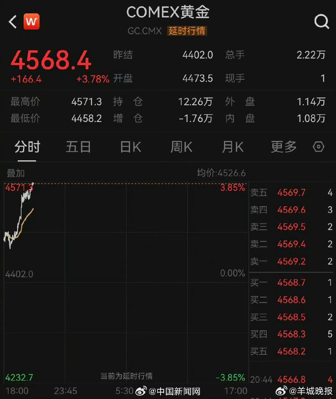 【#黄金价格再度回涨#】3月25日,国际金价一改跌势,出现回涨。截至9时,COMEX黄金一度升至4571.3美元/盎司,最高涨幅超3.8%;伦敦现货黄金一度升至4572.040美元/盎司,最高涨幅超2.2%。 #金价##金价或尚未见底##现货黄金##金价会再创新低吗##金饰克价回落了#(中国新闻网)(编辑:张子皓;审签:周乐瑞)