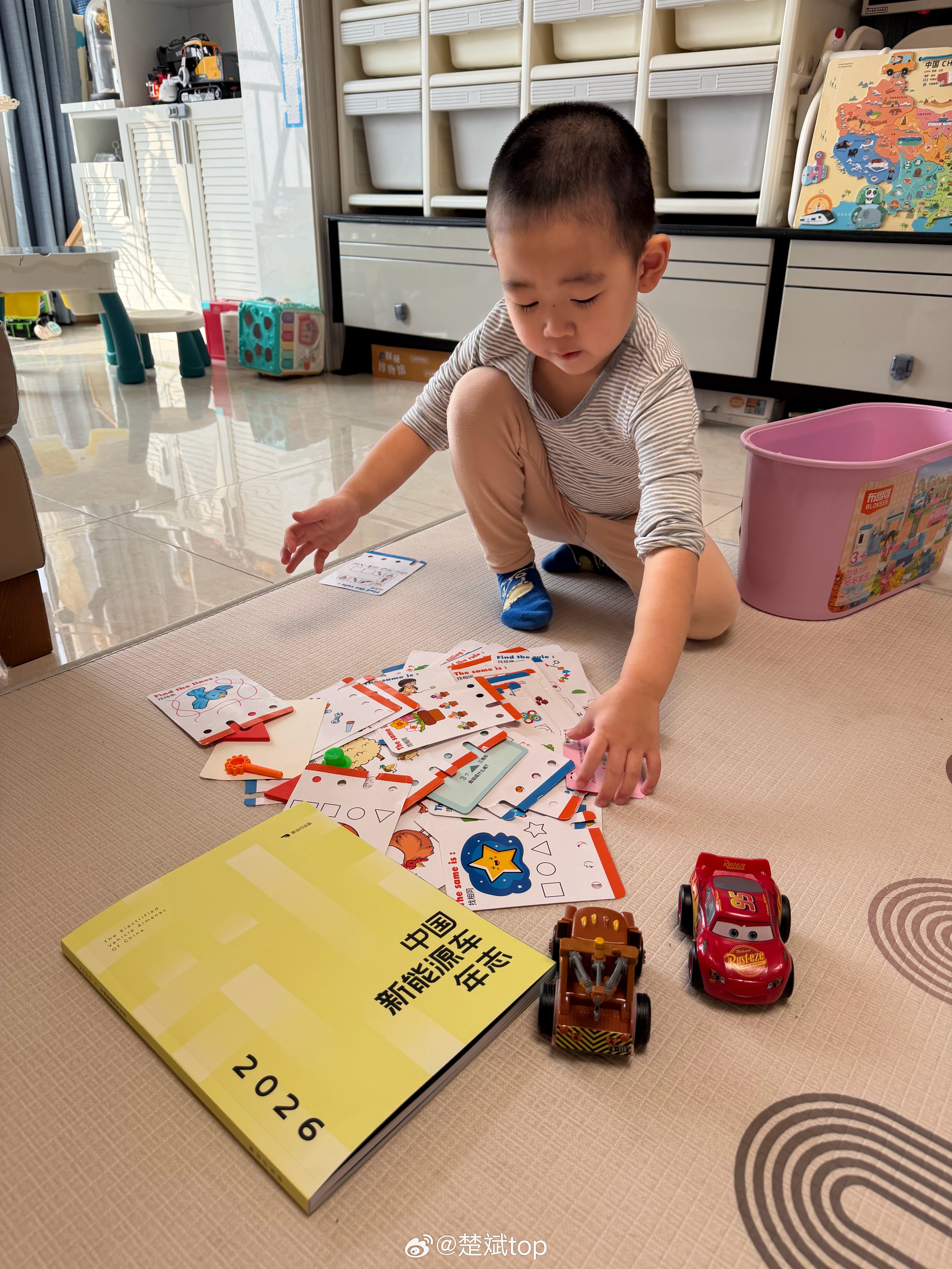收到了送的新出行2026中国新能源车年志,我儿子第一时间看起来了,看来他有做小电