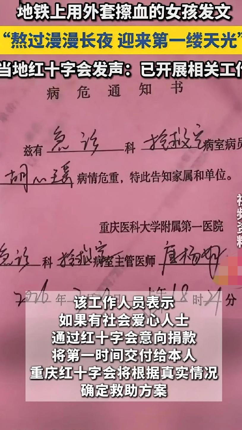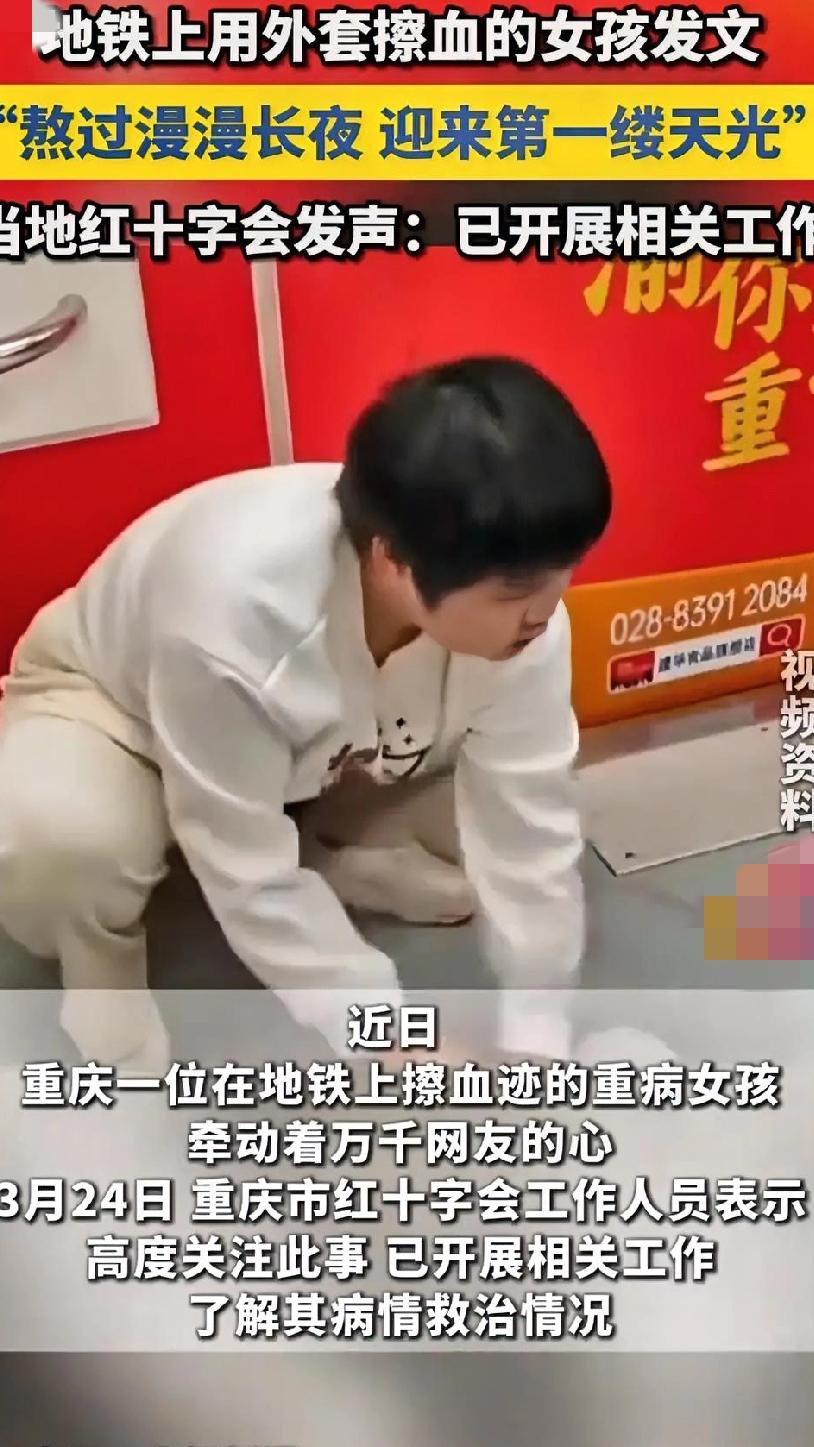 地铁吐血擦地被骂“演给谁看”:你的善良,在有些人眼里就是原罪 女孩在地铁口吐鲜血,疼得直不起腰,却蹲在地上用衣服擦血迹。有人拍下来夸她“教养刻进骨子里”,可评论区里的恶评却扎眼: “都快死了还装,不就是想上热搜吗?” “擦个地而已,至于吹成圣人?” “真要善良怎么不先喊救命,耽误别人时间才是自私!” 我看着这些文字,只觉得刺骨:当一个人在生死边缘挣扎,还在想着别给陌生人添麻烦时,换来的不是心疼,而是“作秀”的指控。 她明明可以瘫在地上等救援,明明可以任由血迹留在车厢,可她偏要忍着剧痛,一点点把地面擦干净。这不是表演,是刻在本能里的体面——哪怕自己狼狈不堪,也不想给世界添一点乱。 可偏偏有人,拿着最刻薄的尺子去丈量别人的苦难:你喊疼,就是矫情;你隐忍,就是装模作样;你善良,就是别有用心。 到底是谁病了?是那个忍着痛擦地的女孩,还是那些躲在屏幕后,用恶意去消费别人痛苦的人?女孩地铁吐血擦净:当善良照亮困境