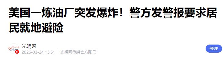 美国多家大型炼油厂接连发生爆炸! 3月24日,美国得克萨斯州阿瑟港的瓦莱罗炼油厂发生爆炸并引发火灾,因为爆炸伴随巨大声响和浓烟,当地政府已经对该区域发送避险令,目前有两处公路周边已经被交通管制,据悉,这次爆炸的可能由工业加热设备故障引起。 附近有居民表示,爆炸发生后,空气中弥漫着一股类似臭鸡蛋的味道,后来经过相关部门检测,确认这种气味是硫磺散发出来的,而硫磺是炼油过程中产生的有害物质,吸入过多会对人体造成伤害。 消息传开后,当地政府第一时间采取了应急措施,向城市西侧的居民发布了就地避险令,要求大家待在家里不要外出,关好门窗,避免吸入有毒气体。同时,为了保障安全,当地还对82号和87号两条公路的周边实施了交通管制,禁止车辆和行人靠近爆炸区域,防止发生二次危险。 事发后,当地消防部门迅速出动,一开始派遣了两辆消防车赶赴现场,随后又部署了危险物质处置小组,全力开展灭火和救援工作。博蒙特消防部门和杰斐逊县治安官办公室也赶来协同救援,争取尽快控制火势。 得克萨斯州环境质量委员会也没有闲着,立即派遣了空气监测人员赶赴现场,带着手持式和车载空气监测设备,对周边的空气质量进行实时监控,随时向公众发布最新的监测结果,让居民了解周边的空气是否安全。 经过消防人员的全力扑救,目前这场大火已经得到了控制,万幸的是,截至目前,还没有收到人员伤亡的报告,瓦莱罗公司的发言人也表示,所有员工都已确认安全,只有少数人受了轻伤,已经得到了妥善处理。 不过,这次爆炸对炼油厂造成的损失不小,据知情人士透露,火灾起源于炼油厂的柴油加氢处理装置,这个装置遭到了严重损毁,而且火势还蔓延到了邻近的流化催化裂化装置区域,目前炼油厂已经部分停产,至于是否要关闭整座工厂,还需要管理层做最终决定。 这家瓦莱罗炼油厂可不是小厂子,它是美国十大炼油厂之一,也是美国能源供应链的关键一环,每天能加工43.5万桶重质高硫原油,承担着美国本土成品油供应的重要任务。 这次它发生爆炸并部分停产,已经对国际能源市场造成了影响,事故发生后,国际油价迅速反弹,WTI原油价格从当天盘中的每桶85美元,一路涨到了91.63美元,而且目前美国汽油零售价格已经突破每加仑3.90美元,如果这家炼油厂长时间停工,美国的汽油供应会更加紧张,油价还有可能继续上涨,最终吃亏的还是美国老百姓。 而这并不是近期美国唯一一起炼油厂爆炸事故,就在这起事件发生前不久,3月13日,中新网就报道过,美国密歇根州底特律郊外的一家炼油厂,也曾接连发生两次爆炸,同样引发了大火和大量黑烟。 当时当地警方紧急疏散了附近居民,多个消防部门联合赶赴现场处置,好在后来事故得到了解决,道路也重新开放,同样没有造成人员伤亡,但也给当地居民带来了不小的恐慌。 其实美国炼油厂发生爆炸,并不是偶然事件,早在2025年10月,美国加利福尼亚州洛杉矶附近的埃尔塞贡多市,雪佛龙石油公司旗下的一座大型炼油厂,就曾发生过爆炸起火,火光映红了夜空,数公里外都能看到,当时相关部门提醒居民留在家中,避免前往该区域。 再往前看,美国的炼油厂还多次出现安全问题,有的因为污染被罚款,有的因为泄漏引发事故,可见美国炼油厂的安全管理存在很大的漏洞。 这次得州瓦莱罗炼油厂的爆炸,初步调查显示,可能是由工业加热设备故障引起的,至于具体的原因,还需要相关部门进一步调查确认。 不过不管原因是什么,接连发生的炼油厂爆炸事件,已经足够说明问题,美国在炼油厂安全管理上,明显没有做到位,没有及时排查设备隐患,也没有完善的应急处置机制,才导致这类危险事件频繁发生。 要知道,炼油厂属于高危场所,里面存放着大量易燃易爆的物质,一旦发生爆炸,不仅会造成巨大的财产损失,还会威胁到周边居民的生命安全,甚至污染环境。 美国作为一个工业大国,按理说在安全生产管理上应该更加严格,可实际情况却恰恰相反,接连出现的爆炸事故,暴露了他们在安全管理上的松懈和漏洞。 目前,得州瓦莱罗炼油厂的后续处置工作还在进行中,空气质量监测也在持续,相关部门正在全力调查爆炸的具体原因,后续会公布详细的调查结果。 这些接连发生的爆炸事件,也给其他国家提了个醒,安全生产无小事,尤其是对于炼油厂这种高危场所,必须时刻绷紧安全这根弦,定期排查隐患,加强管理,才能避免意外发生,保障人民群众的生命财产安全。