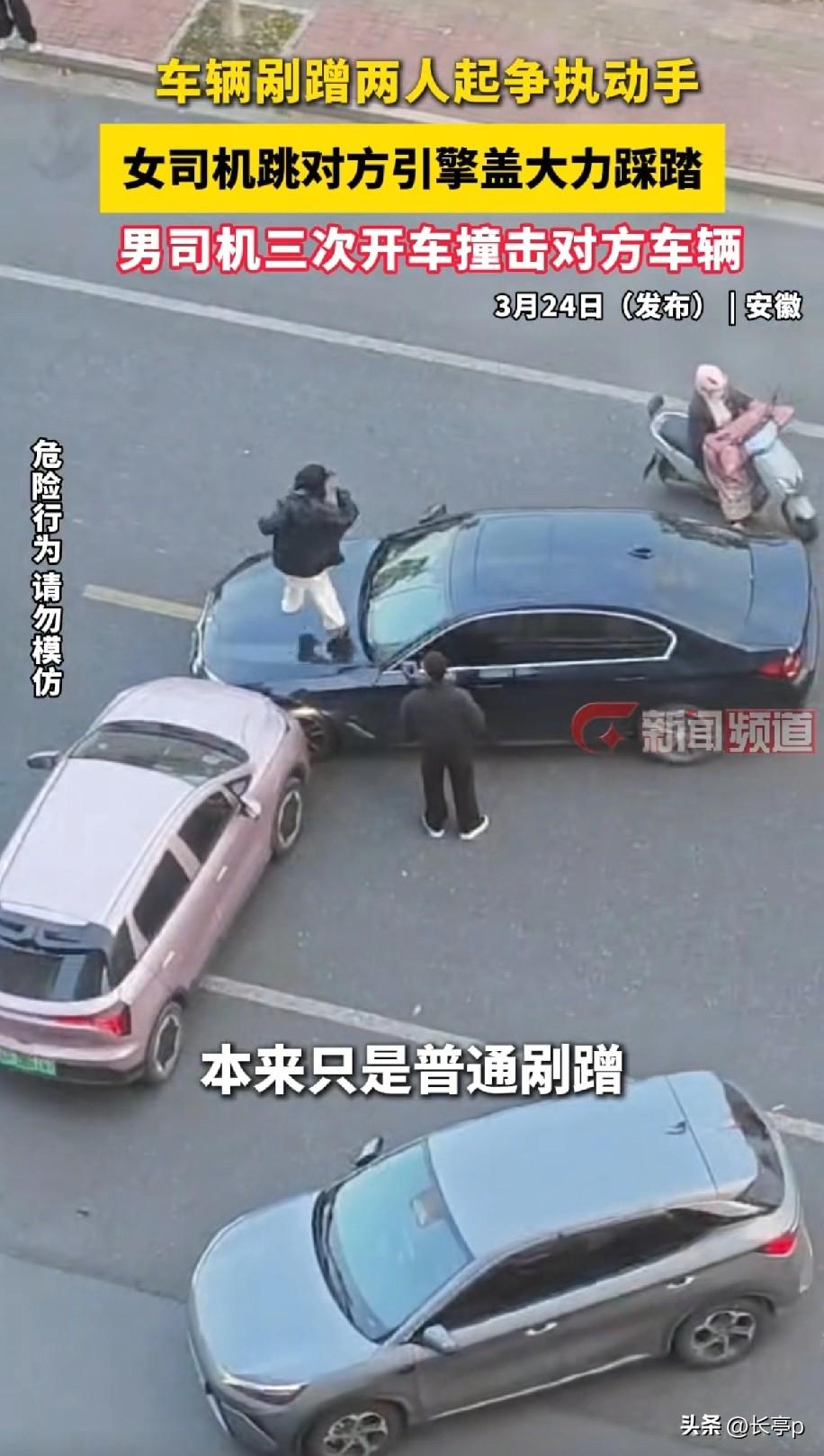 昨天两车剐蹭后女司机跳到对方车上跳 有人说男司机真的不该动手 让她踩让她跳,拍下证据,事后让她赔偿不就好了,但是现实情况不允许 得多好的脾气能忍住,看着自己的车被别人嚯嚯,况且这位女士的脾气真是大,被拽下来后,就给了男的一巴掌 所以在这种情况下很难克制自己 不理解的是这位女士就因为点剐蹭,为啥会发这么大的火,也不至于跳到别人车上使劲踩,说到底遇事还是要冷静 如果动手了,不仅耽误自己的时间,还会耽误很多事情 目前宣城那边还官方消息的处理结果