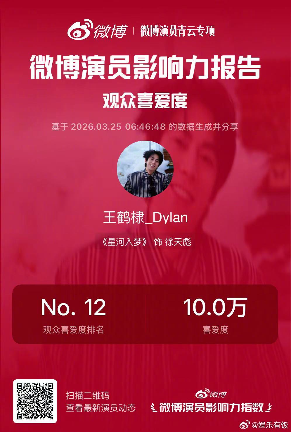 王鹤棣徐天彪观众喜爱度破10万 🎉恭喜徐天彪观众喜爱度成功突破10万!亮眼成绩背后,离不开对角色的用心塑造,从外形气质到情绪表达,都让徐天彪这个角色展现出独特吸引力,给观众留下深刻印象~期待演员王鹤棣更多的精彩表现!戳👉微博演员影响力指数 一起为王鹤棣打call!微博演员影响力