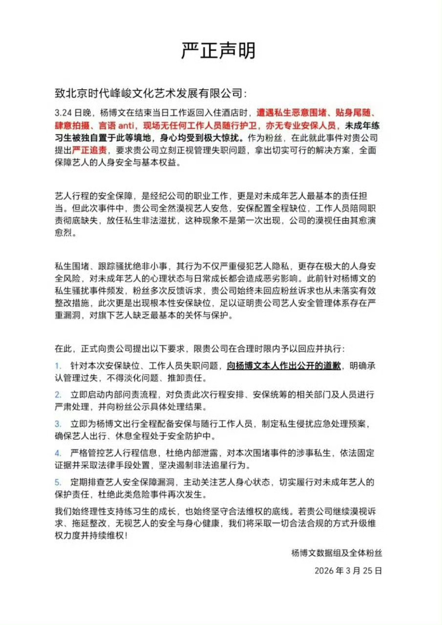 杨博文被私生堵在电梯 杨博文粉丝发维权严正声明,确实这个事情很严重,支持!