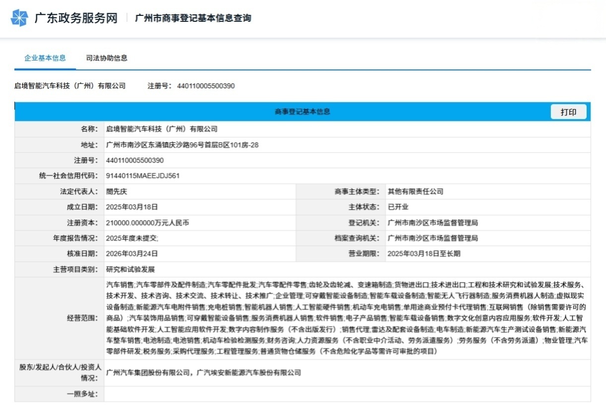 广东政务服务网信息显示,原华望汽车技术(广州)有限公司正式更名为启境智能汽车科技(广州)有限公司。这意味着启境汽车实现了公司与品牌名称的统一,将从战略筹备期迈入市场化运营新阶段。